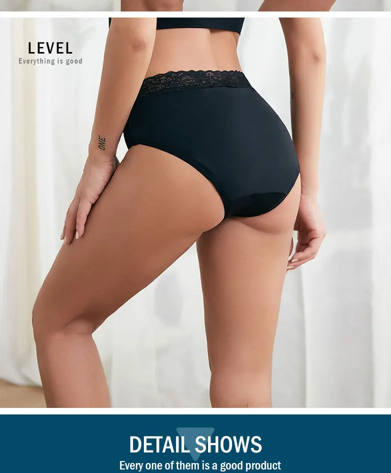 Четырехслойные кружевные многоразовые менструальные трусики, женски...