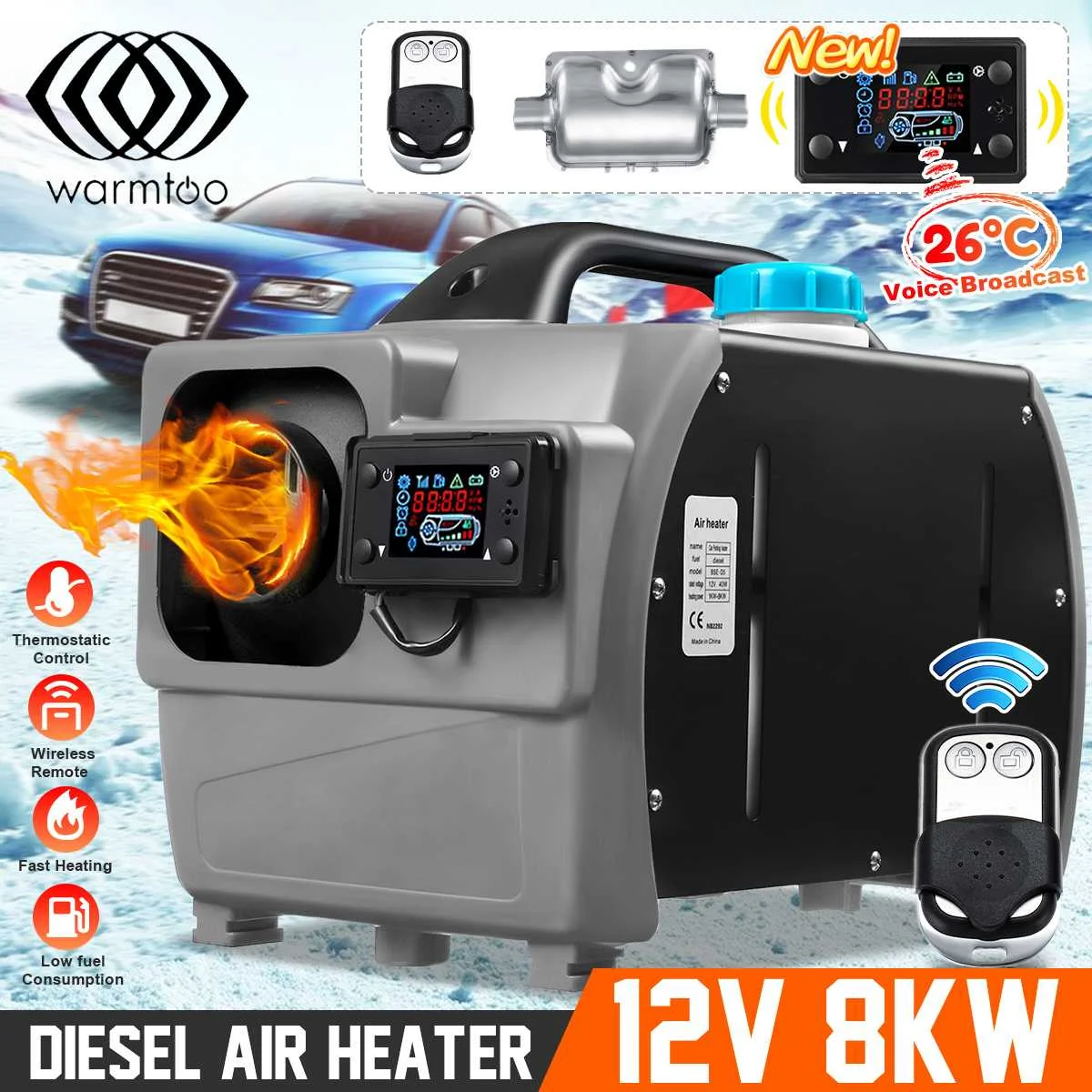 Автомобильный мини-обогреватель Warmtoo Все в одном, 12 В, 8 кВт, воздушный дизельный парковочный отопитель с голосовым оповещением, ЖК-монитор для автомобилей, автобусов, домов на колесах, грузовиков, внедорожников