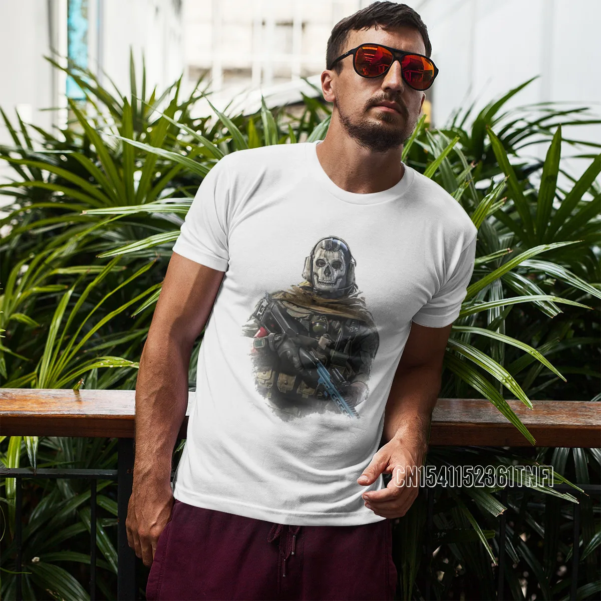 Мужская хлопковая футболка с принтом черепа Призрачного призрака, ч...