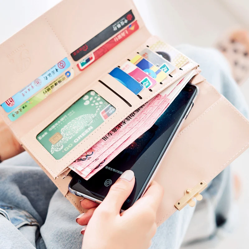 Женский кошелек, Длинный кошелек, кожаная сумка на молнии с пряжкой, вместительная Повседневная сумка для покупок, Сумочка для телефона для девочек, подарок на день рождения и семью
