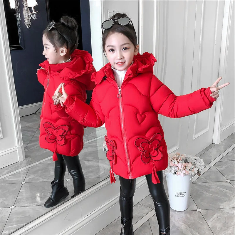 2021 г. Новая детская куртка для девочек плотное зимнее теплое пальто Модная парка с рисунком верхняя одежда с капюшоном, одежда для детей, одежда для девочек 12 лет