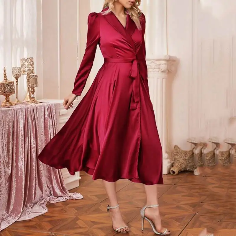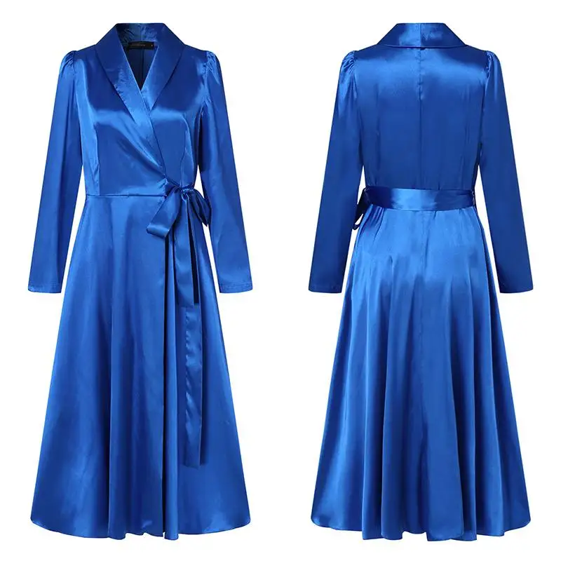 Платье-рубашка женское атласное с V-образным вырезом и длинными рукавами, 2021