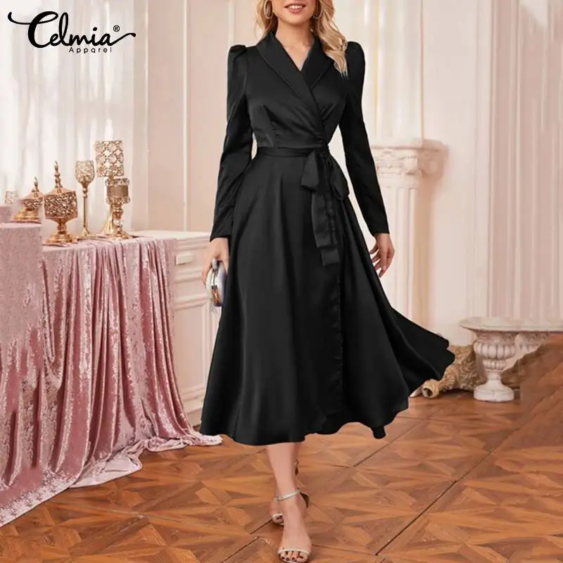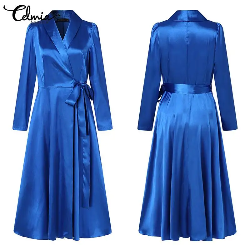 Celmia 2022 осеннее атласное длинное платье-рубашка, женское элеган...