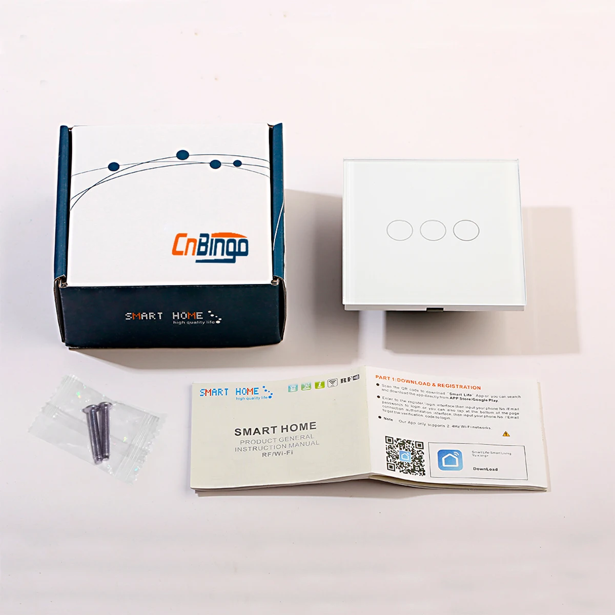 Bingoelec сенсорный переключатель Wi-Fi EU Standart закаленное Хрустальное стекло мощность Светодиодная панель настенный светильник ключатель 123ginter AC100-240