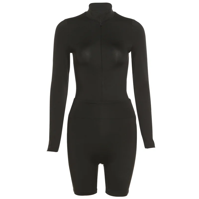 Hirigin Повседневный боди с длинным рукавом и велосипедные шорты комплект из 2 предметов на молнии спортивный комбинезон с ложным воротником облегающая одежда для отдыха