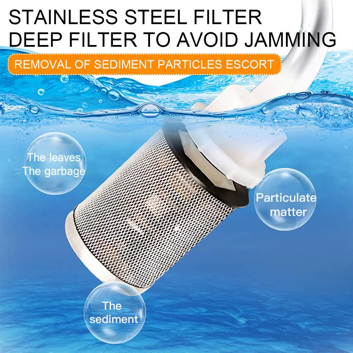 Особенности:-Гибкое использование, легко чистить.-Литий-ионный аккумулятор, простой в управлении.-Легкий и удобный, длительный срок службы батареи.-Удобная удобная ручка, длительное сцепление без усилий.-Вы можете очистить в любом месте, где есть вода, в том числе с помощью ведра, бутылки, потока или бассейна.-Нержавеющая сталь тонкой сетки, и он имеет высокую эффективность и глубокой фильтрации, глубокий двойной фильтрации примесей в воде, долгий срок службы Защитная помпа.