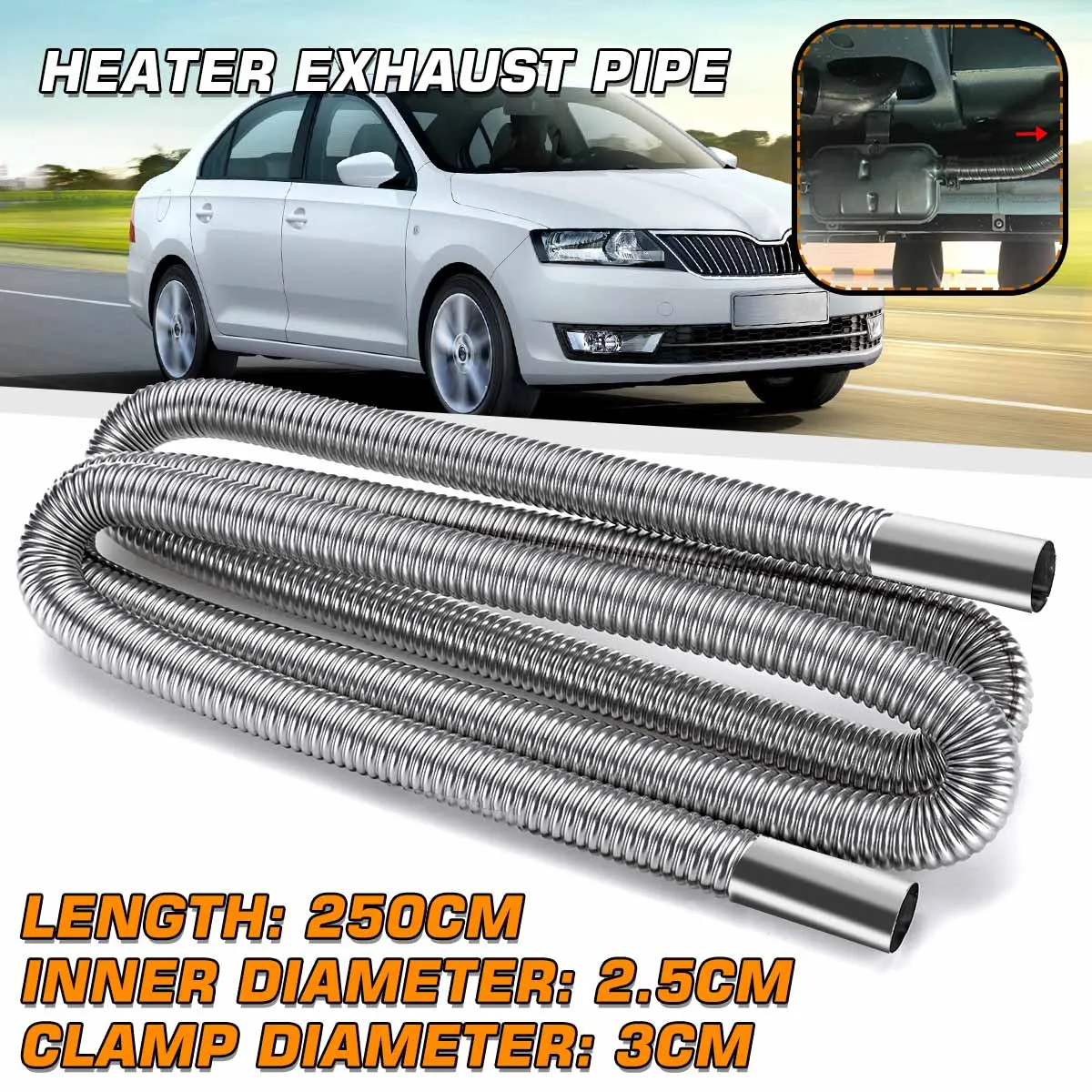 250 см автомобильный обогреватель, выхлопная труба, воздушный дизельный парковочный обогреватель, газовый воздуховод, шланг с зажимами из нержавеющей стали