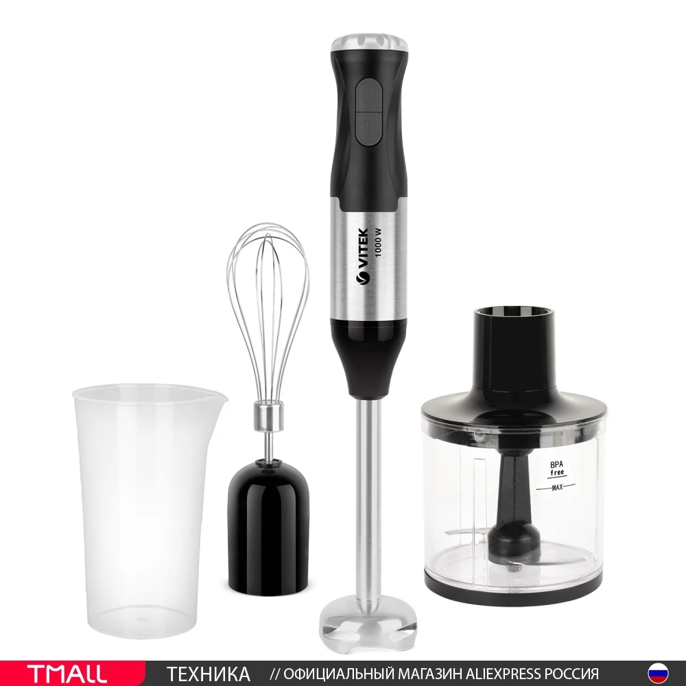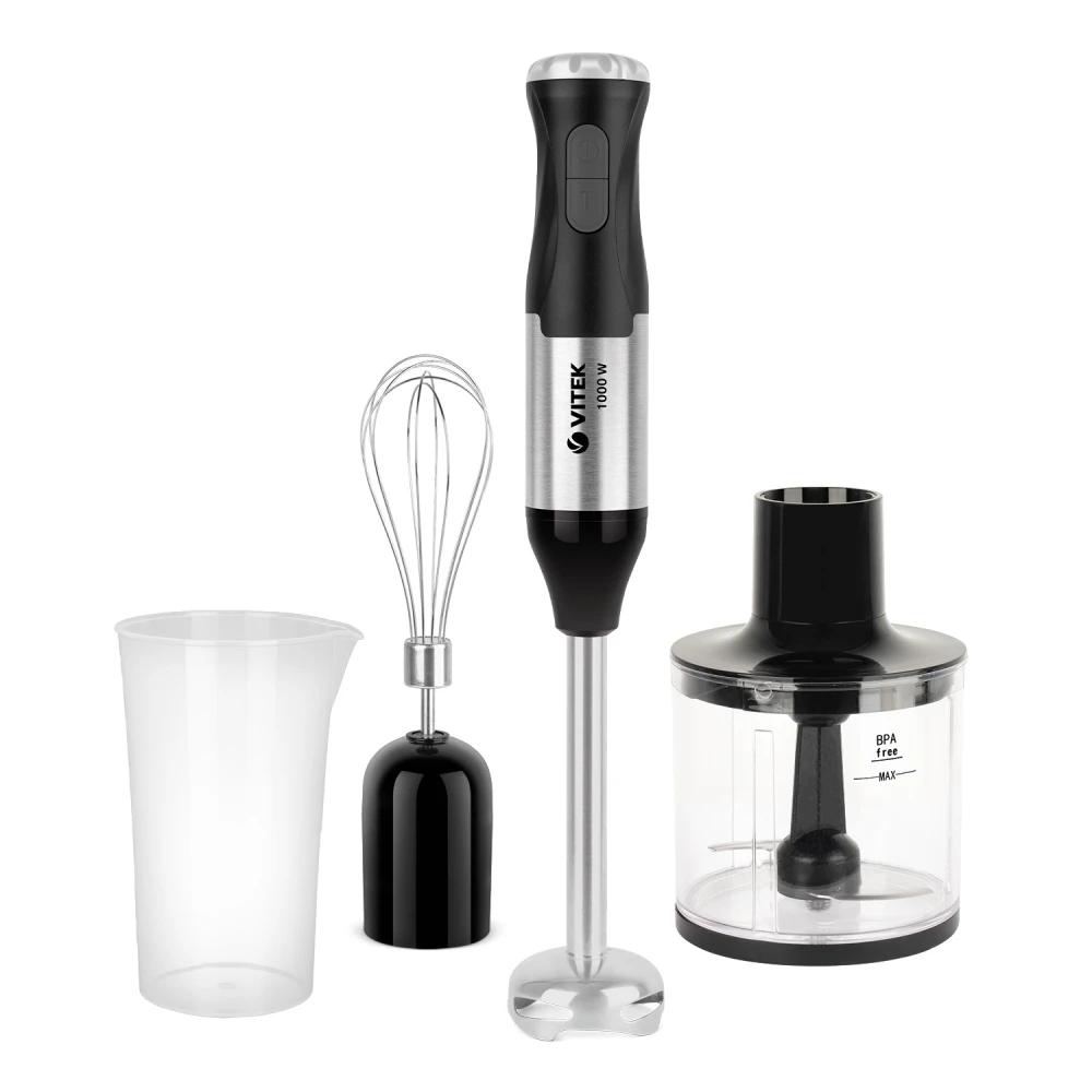 Легко и быстро измельчить ингредиенты для приготовления блюда поможет погружной блендер VITEK VT-3425 с максимальной мощностью 1000 Вт. В комплект с прибором входят стакан для смешивания емкостью 700 мл и чаша для измельчения (450 мл). Рабочая часть блендера, насадки для взбивания, а также лезвия изготовлены из высококачественной нержавеющей стали, гарантирующей ему долгий срок службы. Особому удобству в работе способствуют пять скоростных режимов прибора, а также режим «Турбо», который способствует максимально эффективному измельчению продуктов.