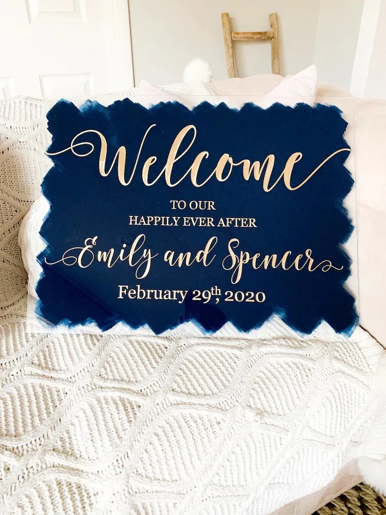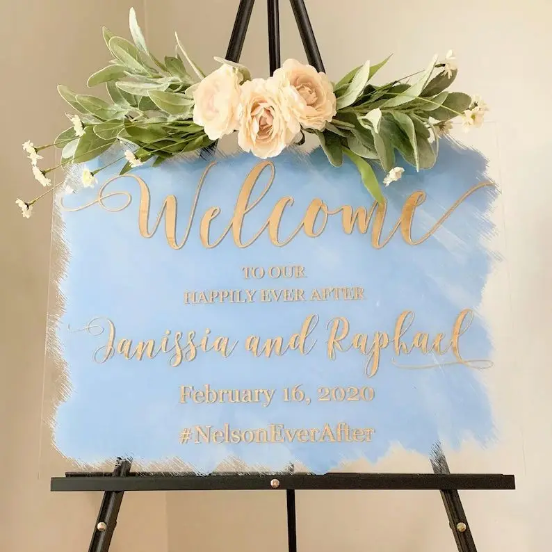 Наш расписанный акриловый фон приветствуются знаки приходят персонализированные с вашими именами и датой свадьбы. Этот знак является прекрасным декором для вашей свадебной церемонии и добавит вам идеальный штрих к вашему особому дню.