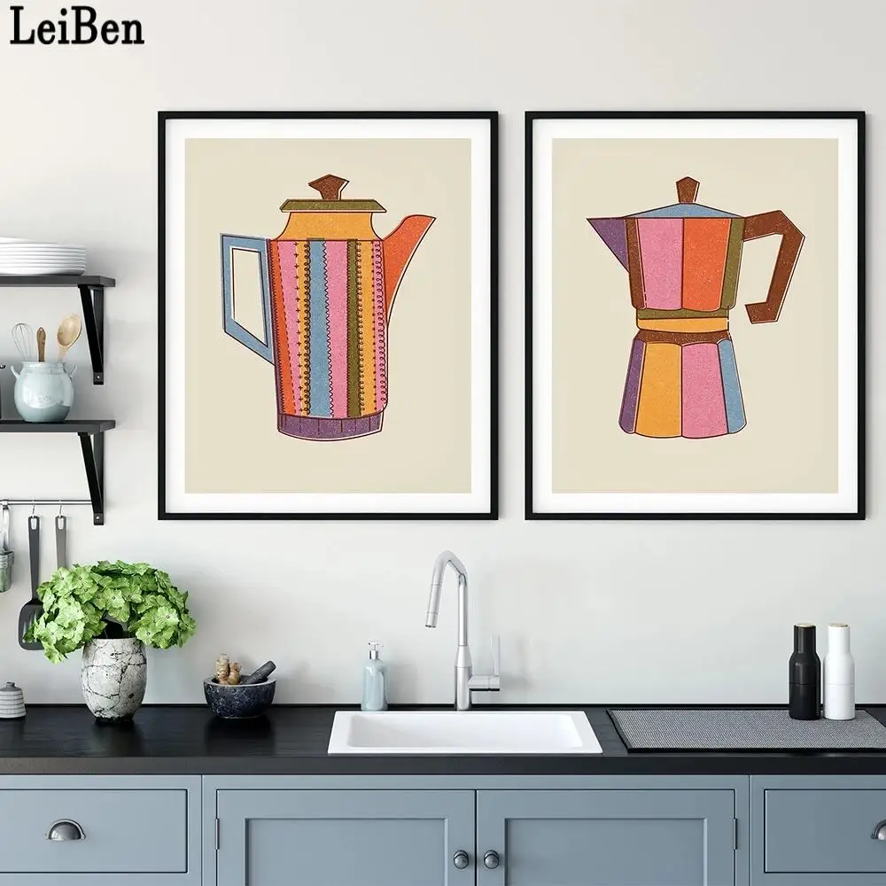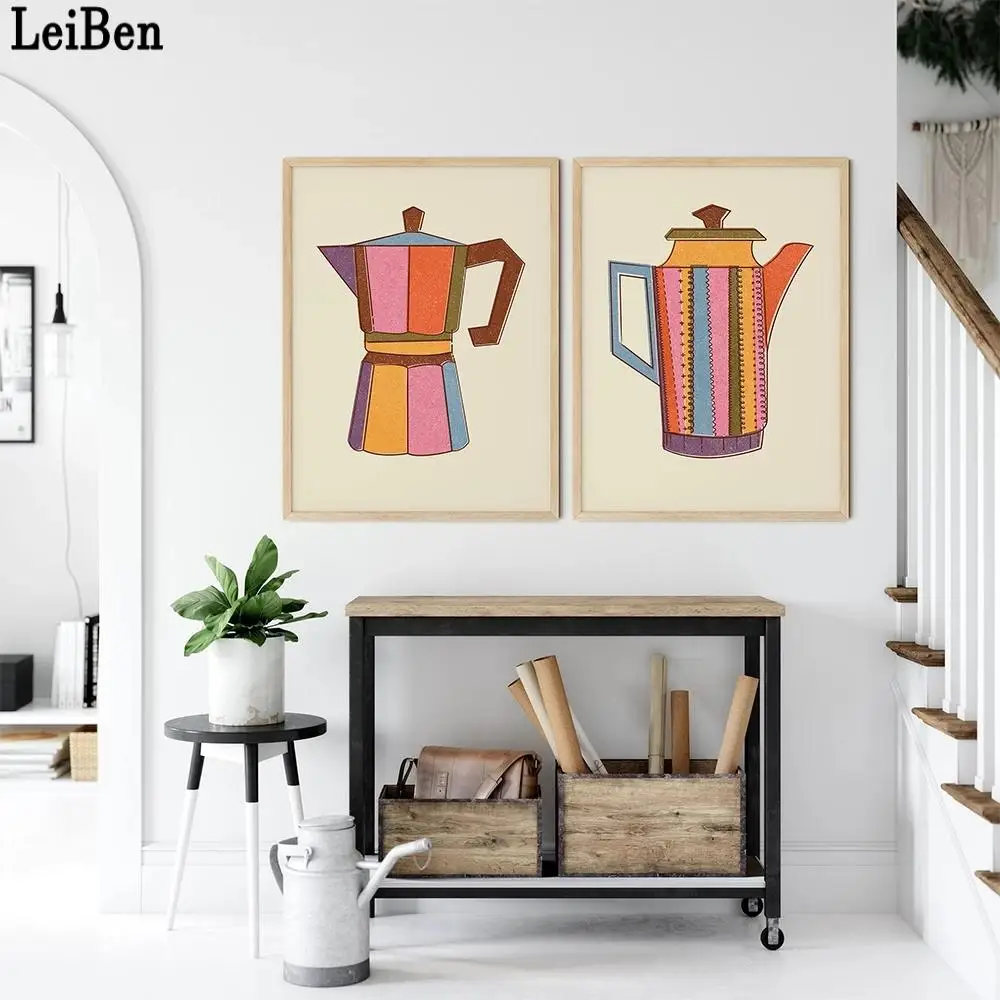 Ретро Современная Картина на холсте среднего века в скандинавском стиле с чашкой кофе чая настенные художественные плакаты с принтом картины для столовой кухни домашний декор