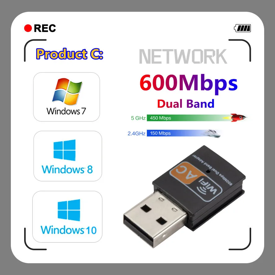 Двухдиапазонный USB Wifi адаптер 600 Мбит/с Bluetooth 802.11ac Мини Wifi ключ портативная сетевая карта 2,4G/5 ГГц беспроводная карта PC/Loptop