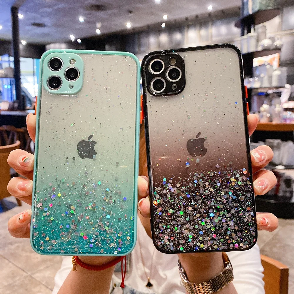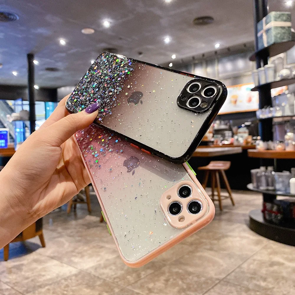 Блестящий силиконовый чехол для Oppo Realme C21 C20 C15 C12 C11 5 C3 5i 6i Reno 5 4F 5F градиентные блестки Защита объектива прозрачная крышка