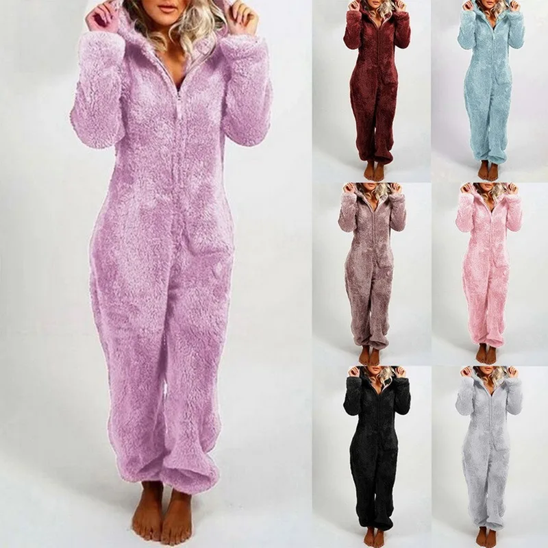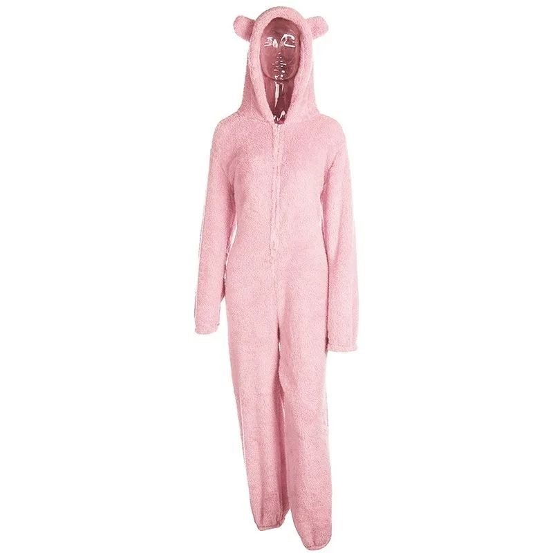 Зимние женские комбинезоны, однотонная теплая Пижама, флисовые комбинезоны, одежда для сна, комбинезон, милая Пижама с капюшоном в виде медведя для женщин, ночное белье, домашняя одежда