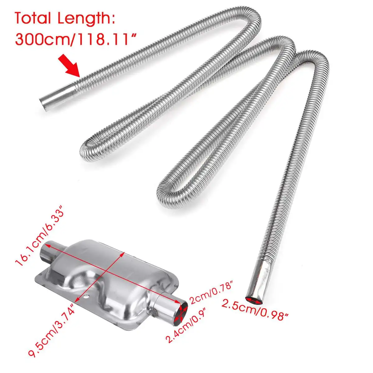 300 см выхлопная труба из нержавеющей стали с глушителем для автомобильного парковочного воздушного дизельного нагревателя