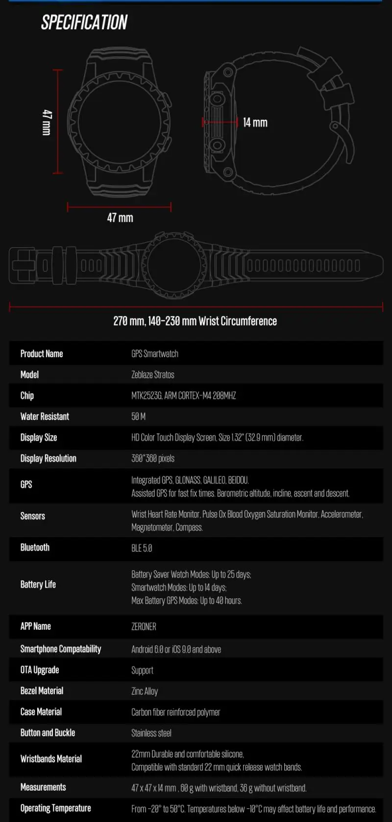 Новинка 2021, мужские Смарт-часы Zeblaze Stratos с сенсорным экраном, спортивные водонепроницаемые часы для фитнеса, Смарт-часы с пульсометром