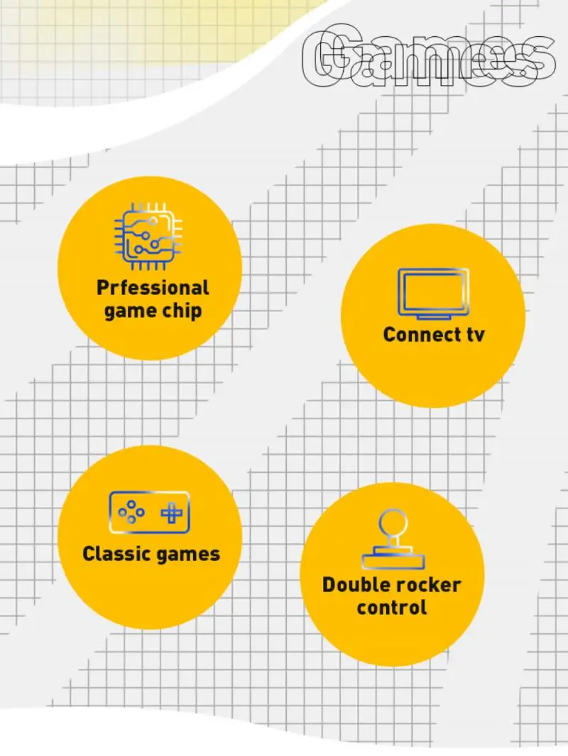 • Нужно только подключить игровую консоль к интерфейсу телевизора, usb-кабель питания для передачи данных к хосту, источник телевизора настраивается на соответствующий канал высокой четкости для отображения экрана списка игр на телевизоре, и ручка помещается в батарею для дистанционного управления, Подключи и играй, легко играть, просто и щедро, и легко управлять.