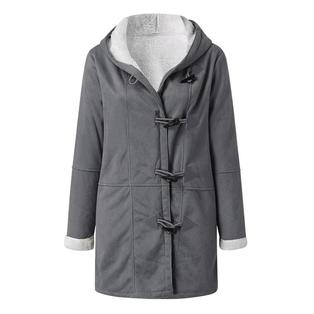 Женское вельветовое пальто с капюшоном, с роговыми пряжками, плотно...