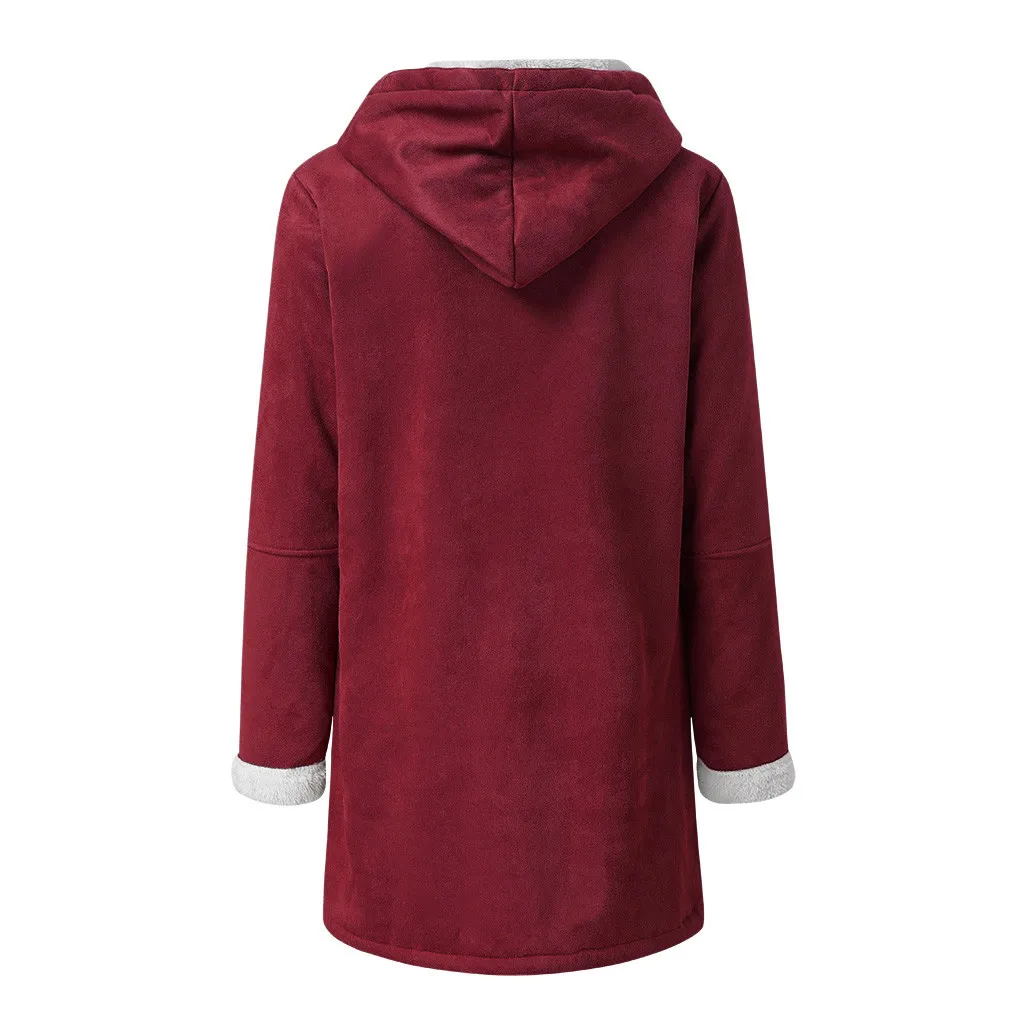 Женская теплая осенняя куртка, плюшевая верхняя одежда с капюшоном, Дамская верхняя одежда с длинным рукавом, карманами и пряжками, женские топы, 2021