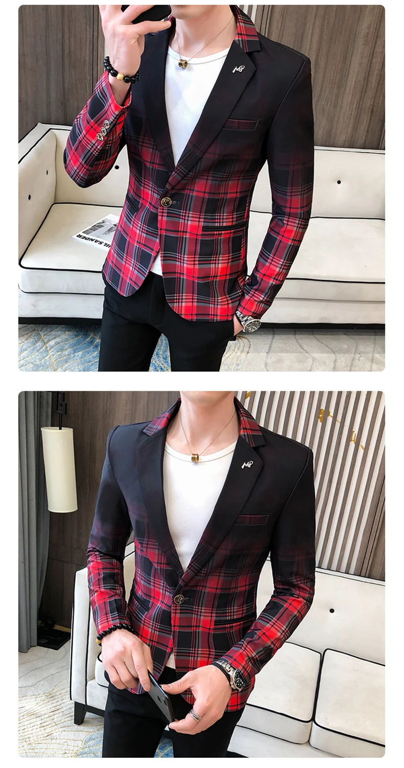 Весна 2021, мужской Клетчатый Блейзер, Модный деловой Повседневный ...