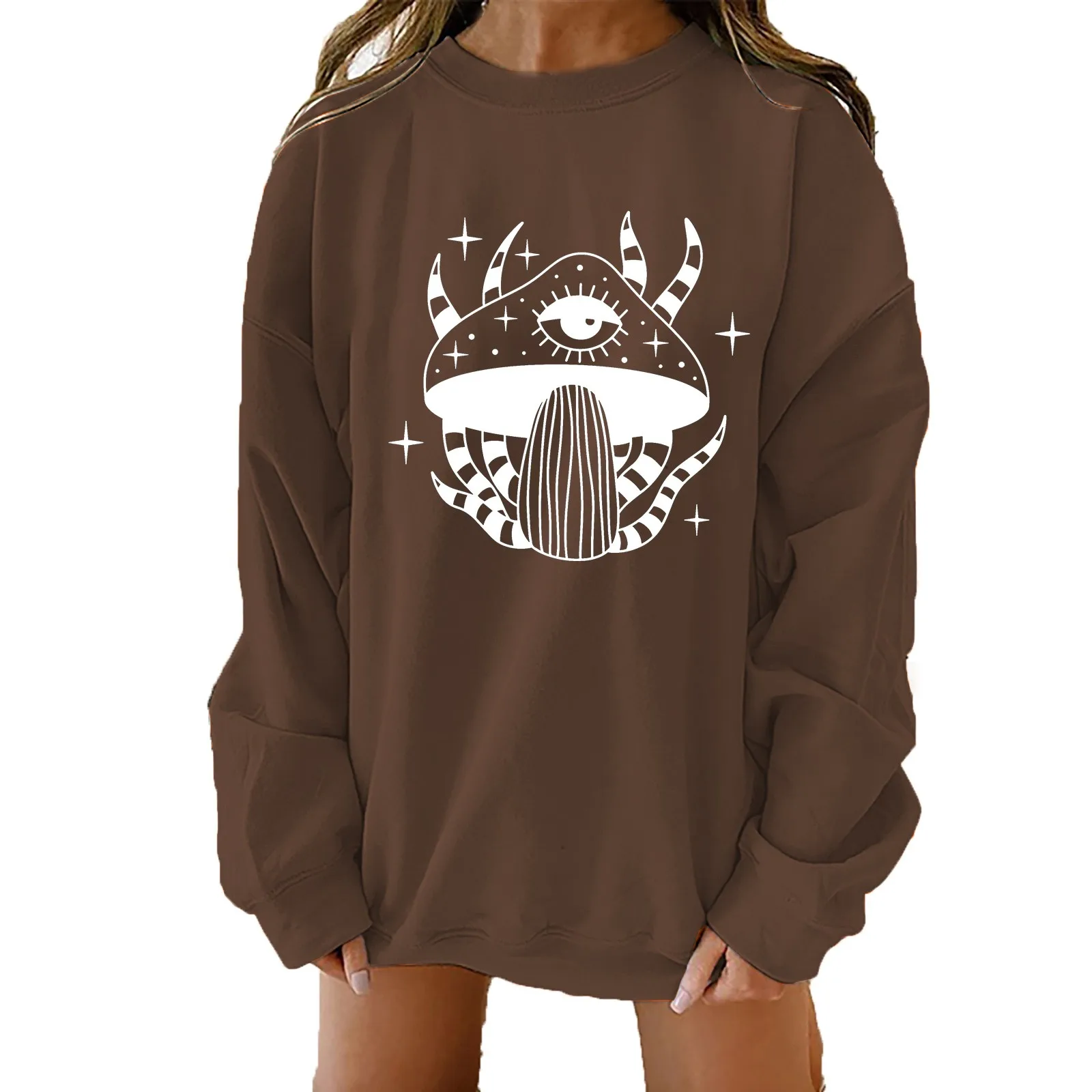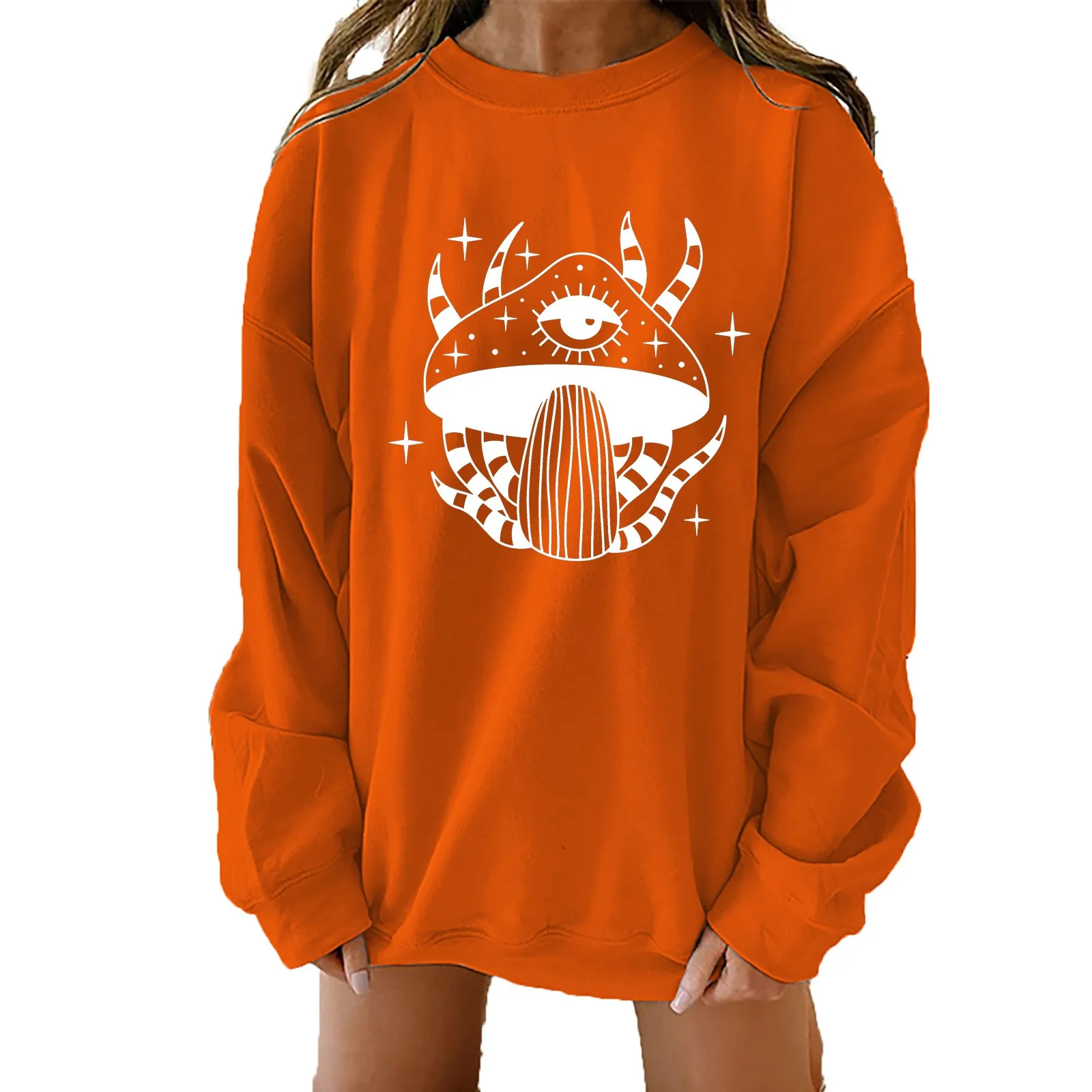 Женский свитшот с принтом в виде грибов, Осенний винтажный Свободны...