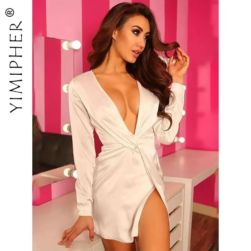 Женское облегающее платье с V-образным вырезом, длинным рукавом