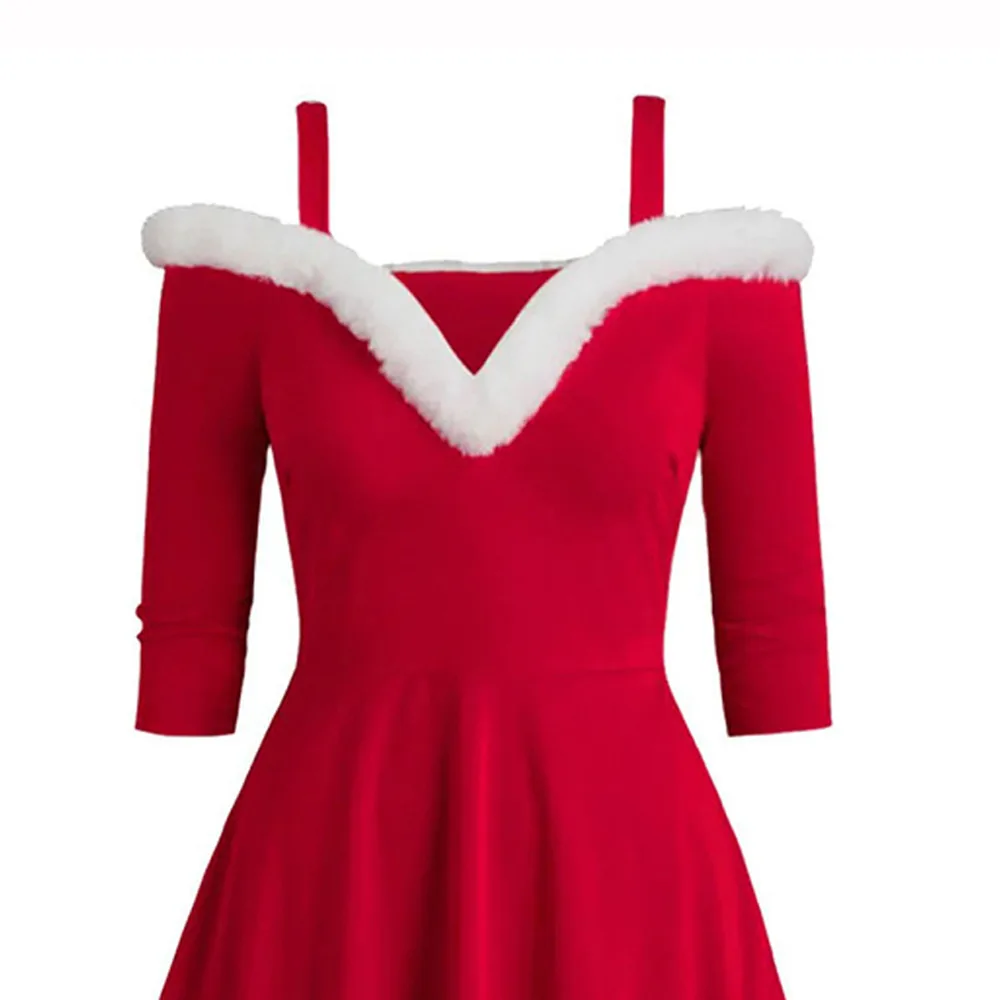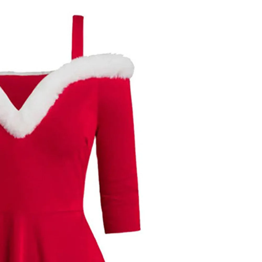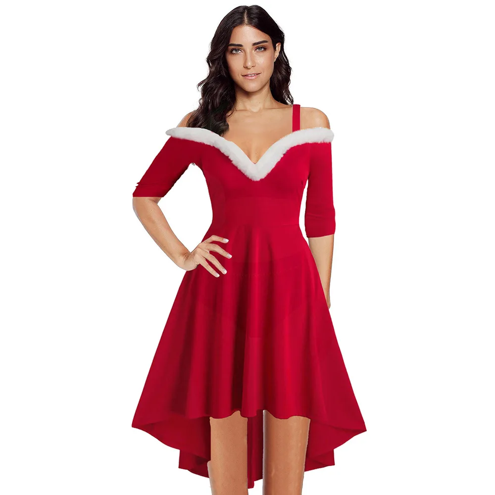 Осенне-зимнее женское рождественское платье в европейском и американском стиле с длинными рукавами и глубоким V-образным вырезом, с открытыми плечами