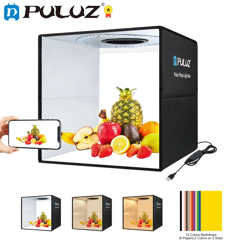 Портативный кольцевой светодиодный светильник PULUZ для фотостудии, 40 см, с регулируемой яркостью, рабочий стол, палатка для съемки, софтбокс, 6 x двухсторонний цветной фон