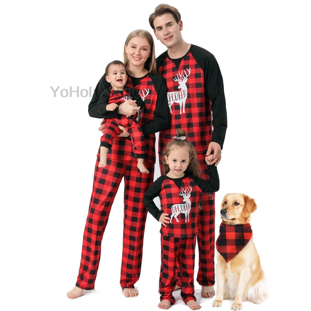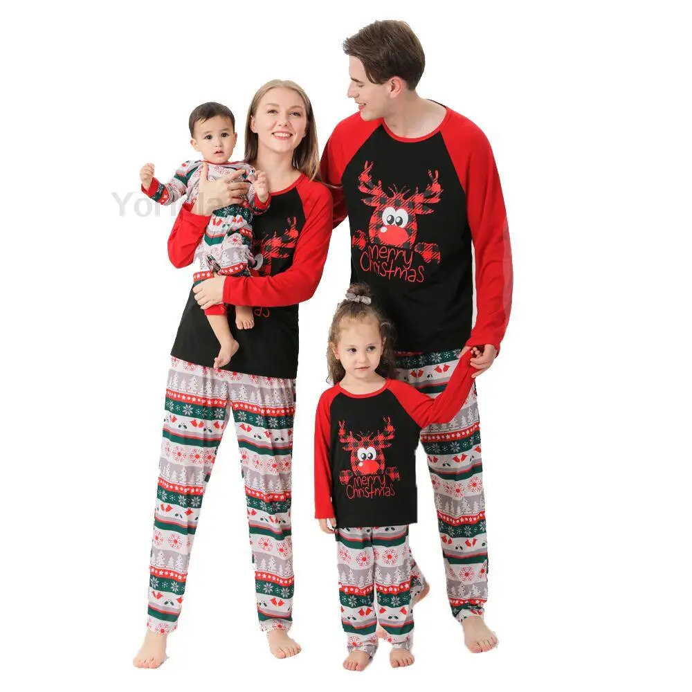 Семейные костюмы одинакового вида с длинным рукавом, подходящая одежда, комплекты одежды с рождественским оленем для дочери, матери, папы и сына, пижамы