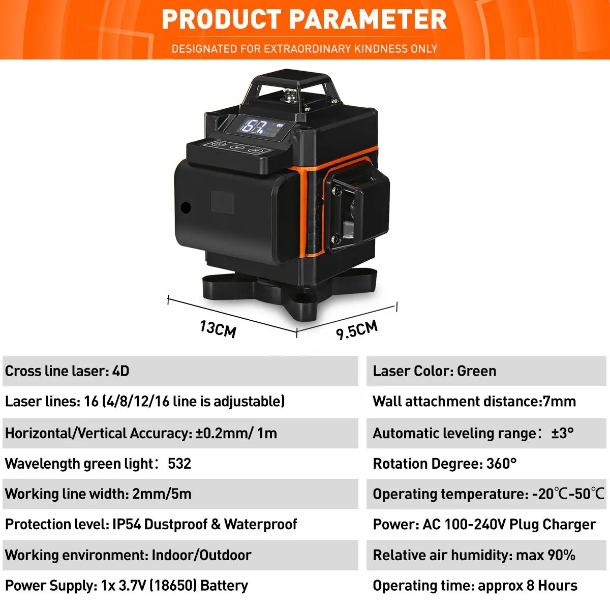 -4D 16 линейный лазерный провод для точного позиционирования.