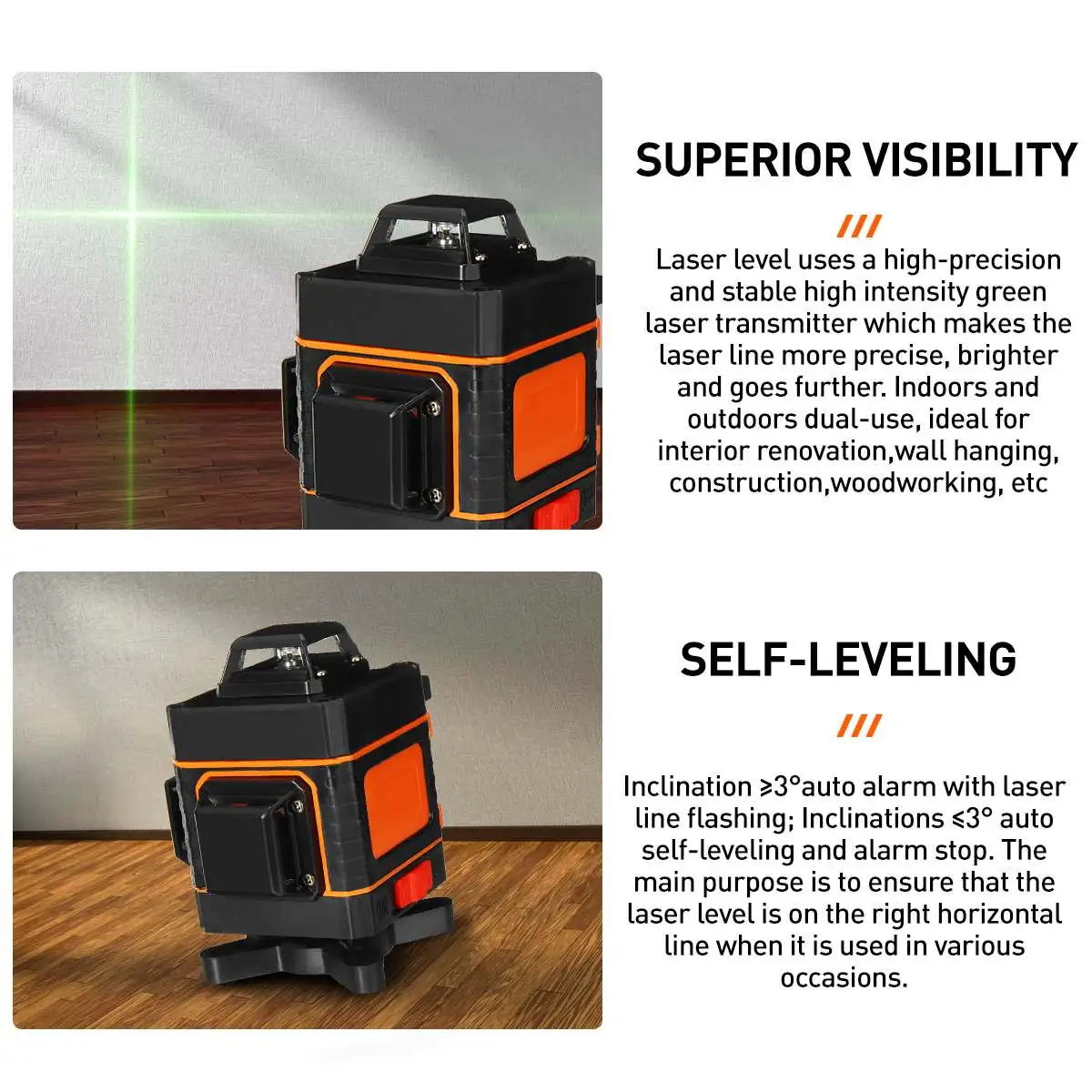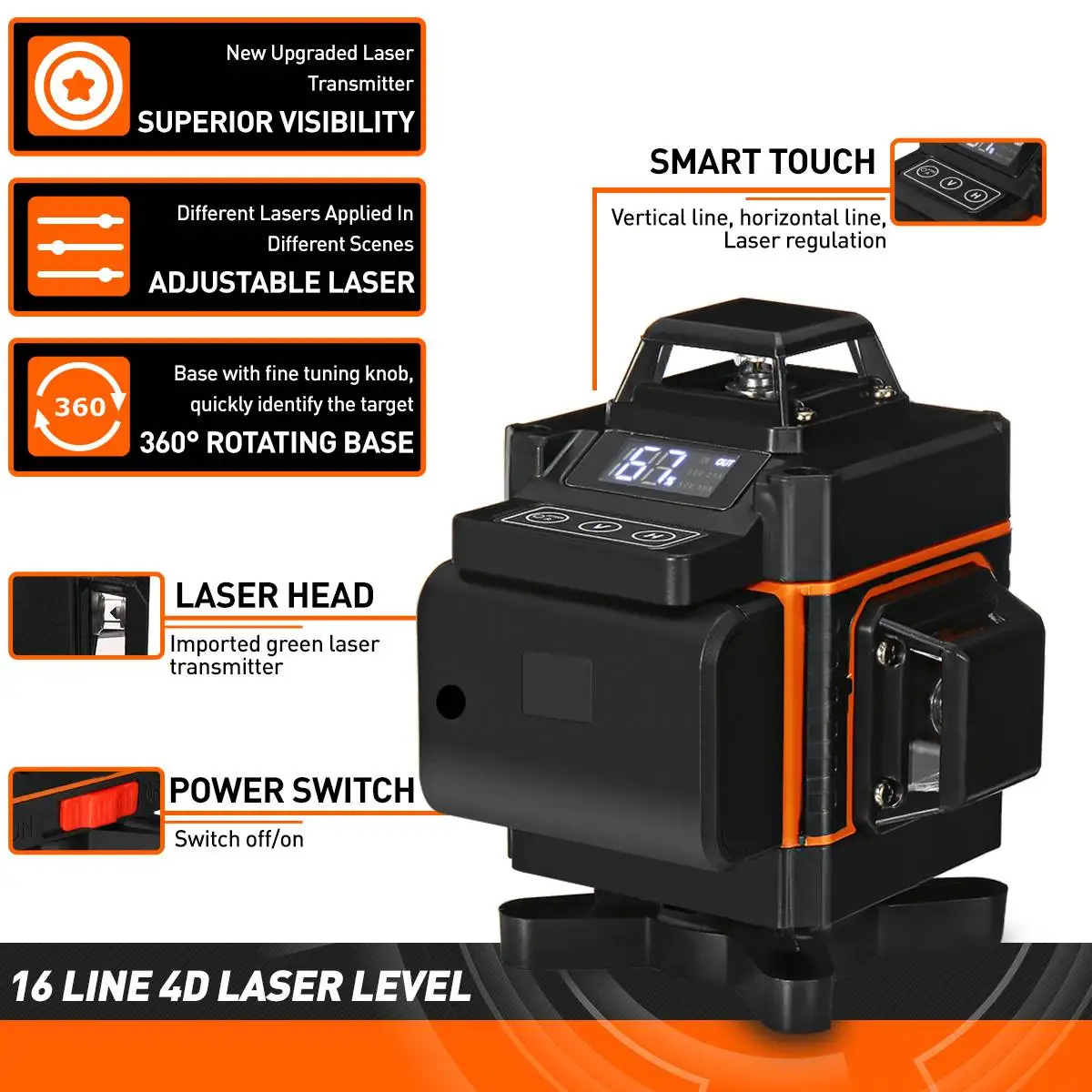 Самонивелирующийся лазерный уровень, 16 линий, зеленый 4D, 360 градусов