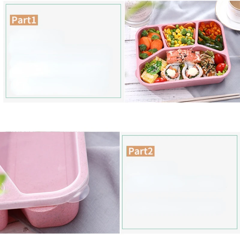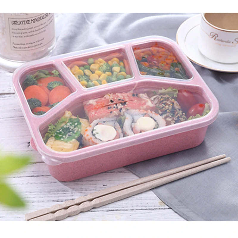 Ланч-бокс из здорового материала, 4 ячейки, бэнто-боксы из пшенично...