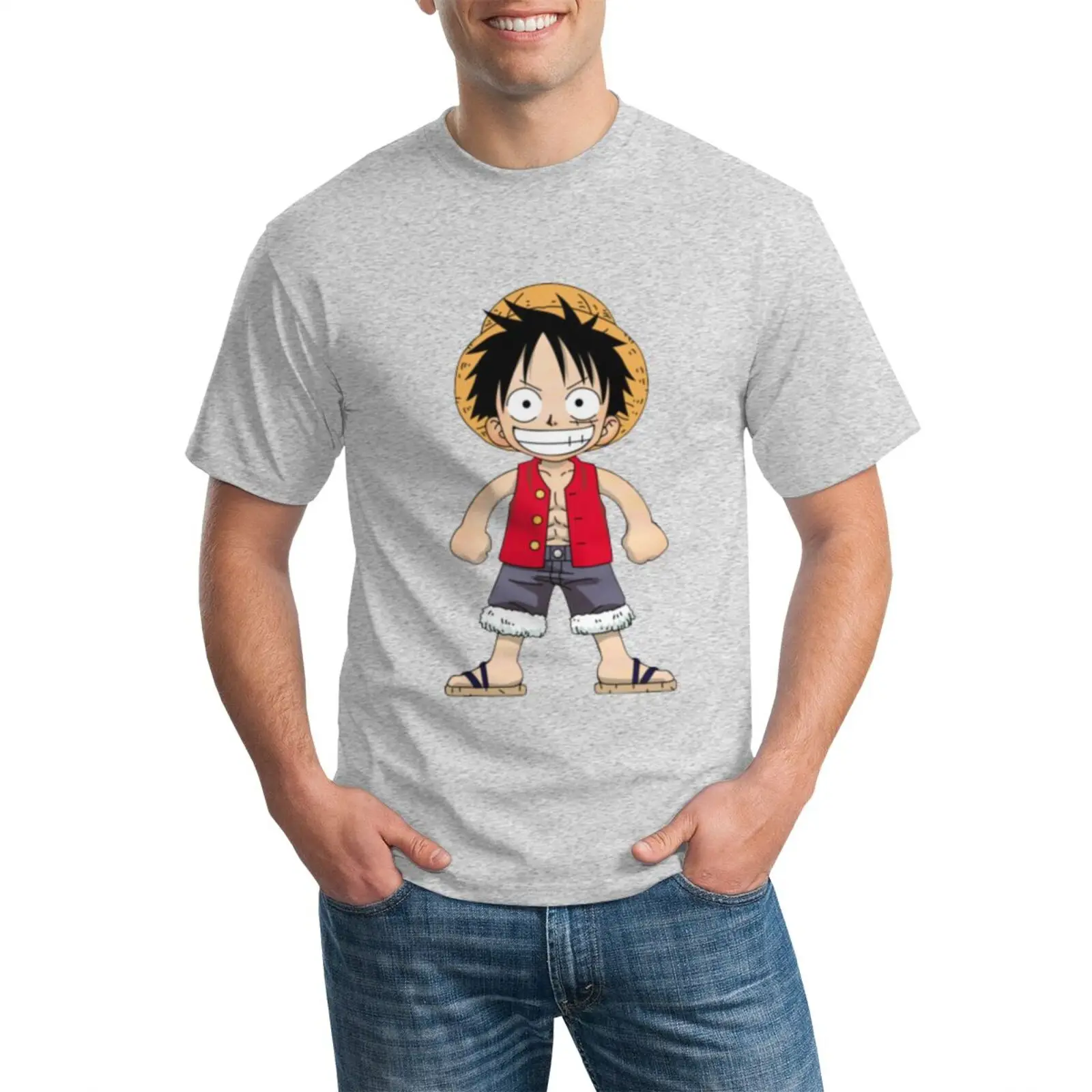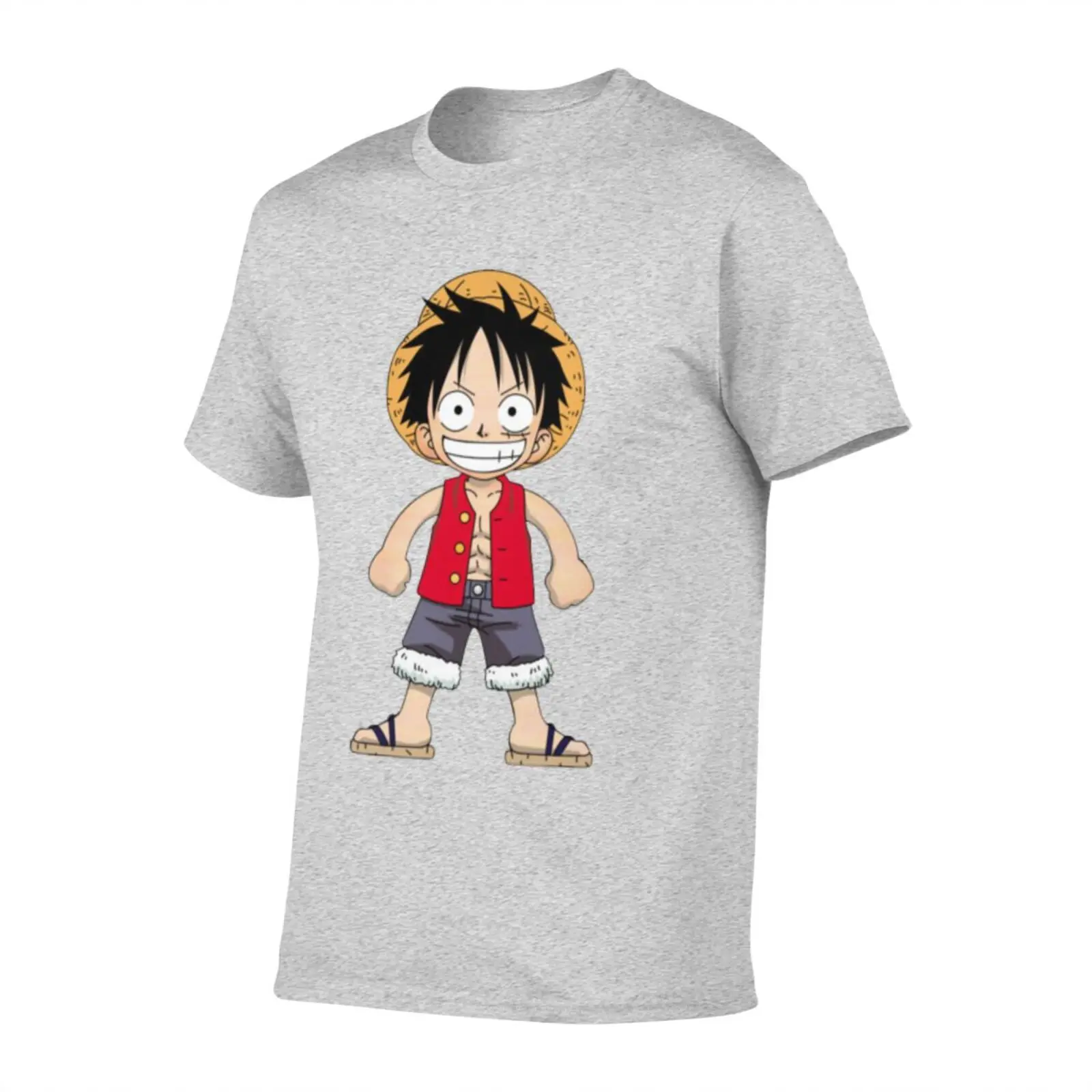 Классическая серия японских комиксов с принтом Луффи, футболка из чистого хлопка с круглым вырезом и коротким рукавом, серый топ для мужчин и женщин