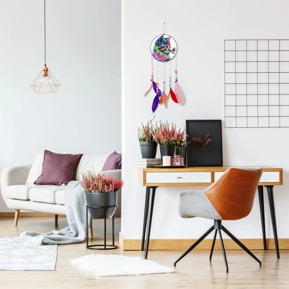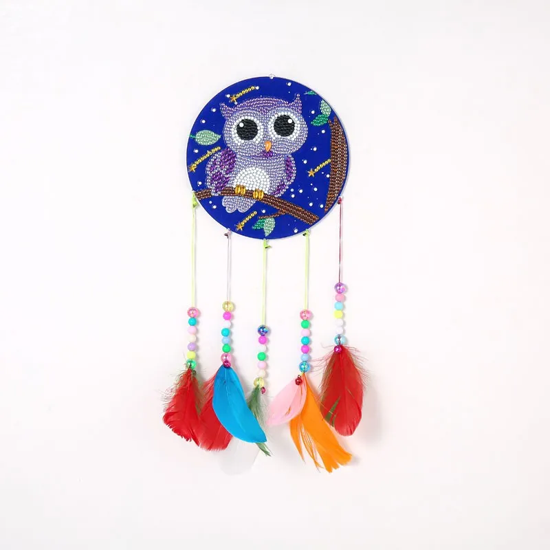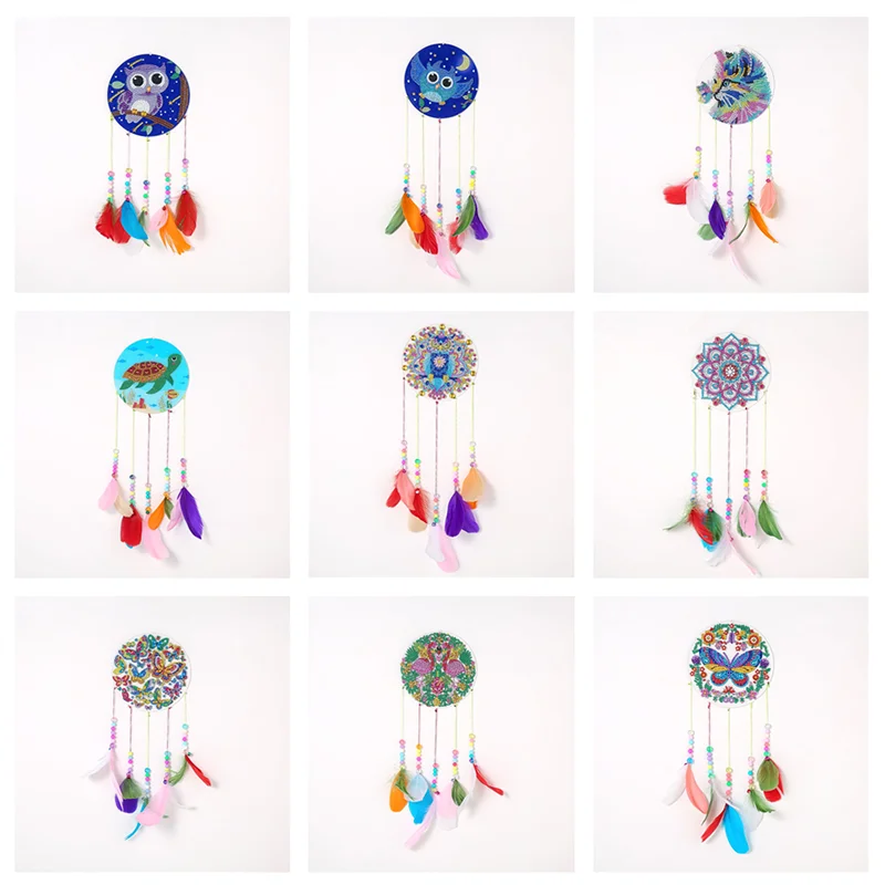 DIY алмазная живопись Ловец снов подвеска-колокольчик Бриллиантовая мозаичная фигурка животного узор цветные перья украшения домашний Декор подарок