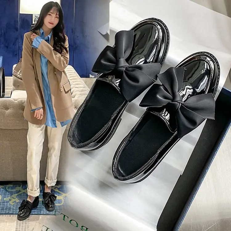 Туфли женские с закрытым носком, повседневные кроссовки, лоферы, оксфорды с мехом, с бантом, универсальные, с круглым носком, осень