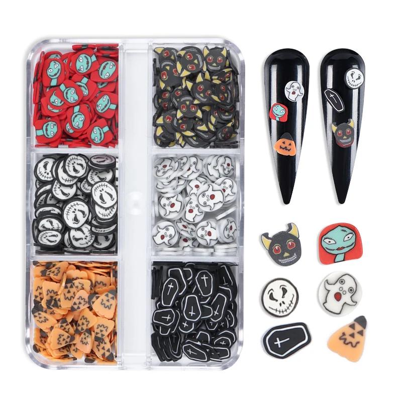 6 Маникюр для ногтей сетка искусство Рождество Хэллоуин Стиль Полимерная глина дизайн набор для украшения ногтей Акриловые амулеты зимние аксессуары