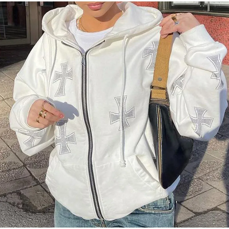 Номер моделиWomen Rhinestone Cross Print Sweatshirt