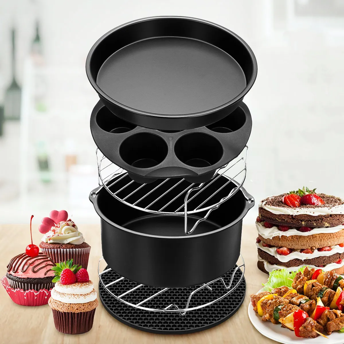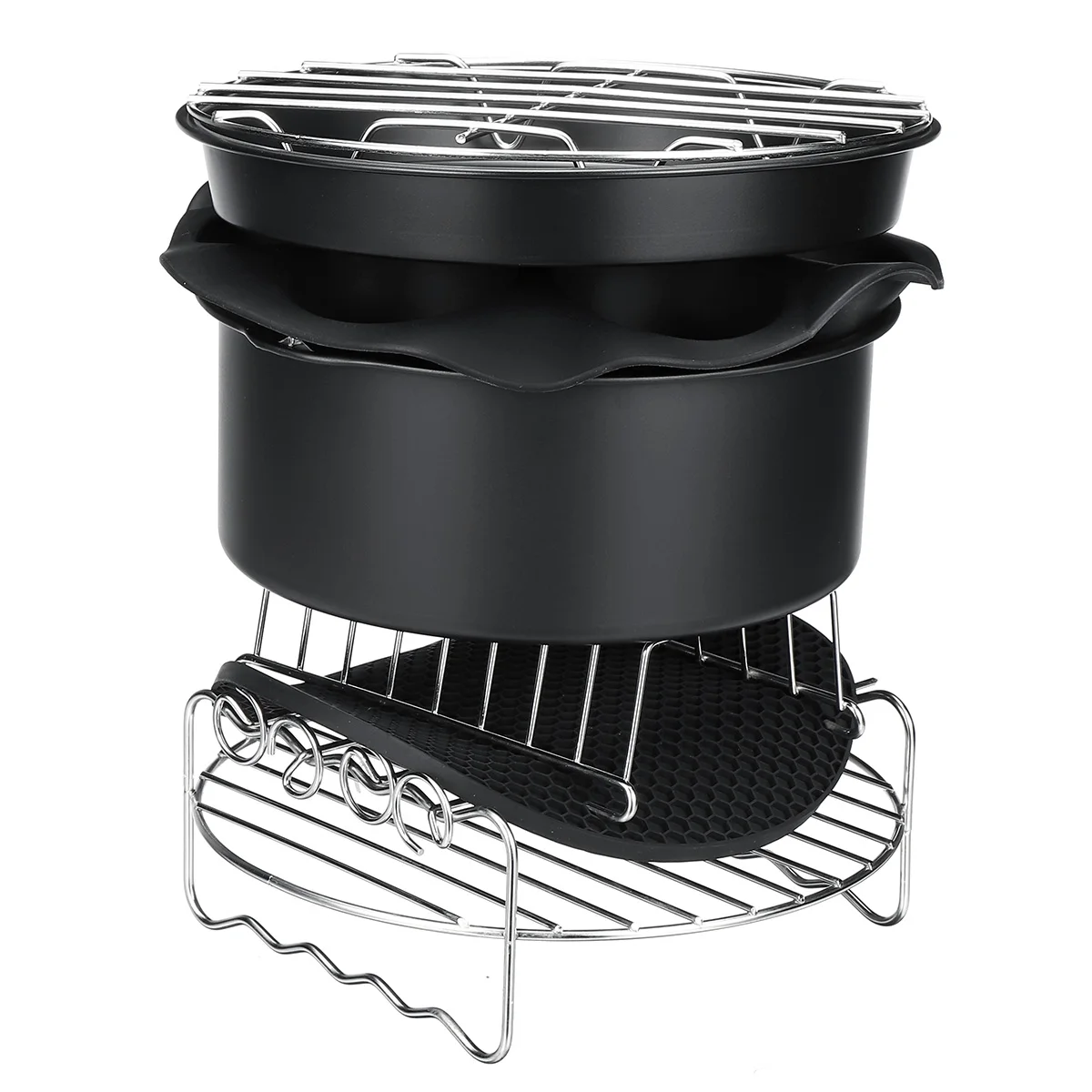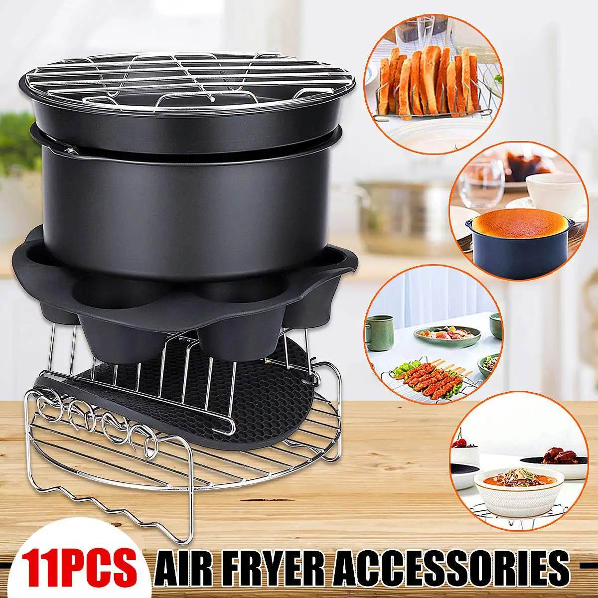 11 в 1, набор аксессуаров для фритюрницы, 8 дюймов, корзина для выпечки, барбекю, сковорода для пиццы, кухонные инструменты для приготовления пищи, для фритюрницы 5,2 QT