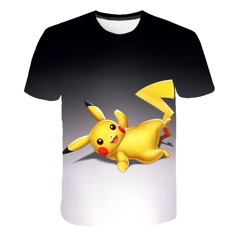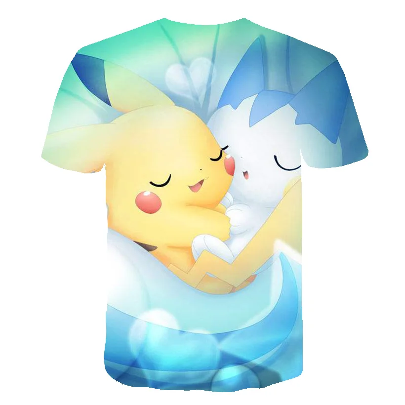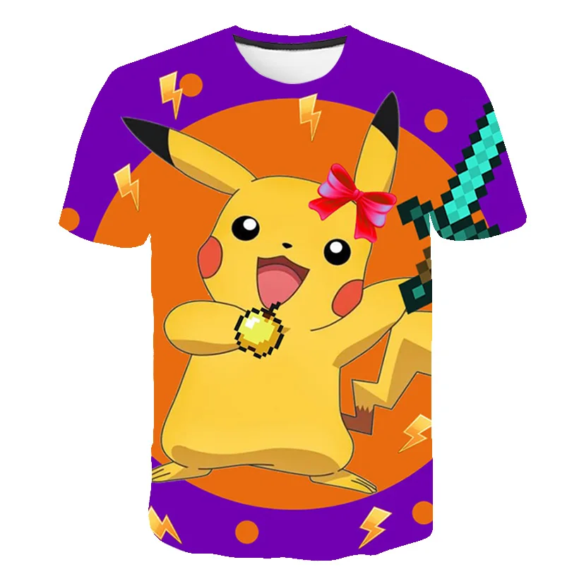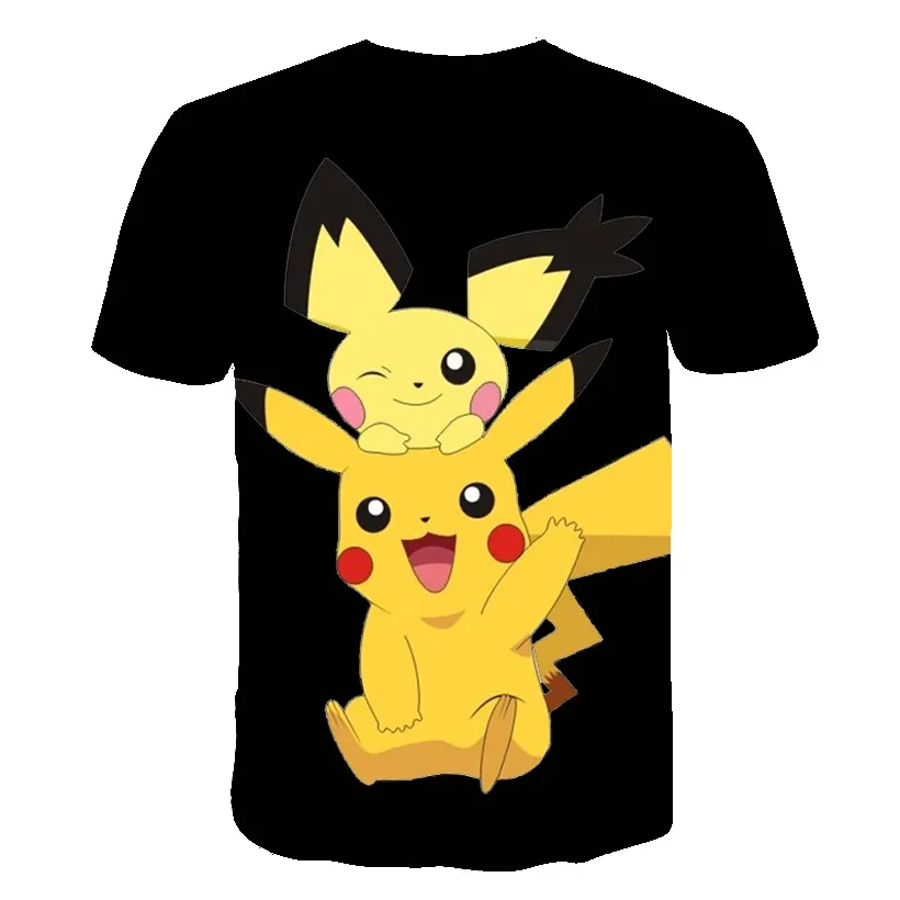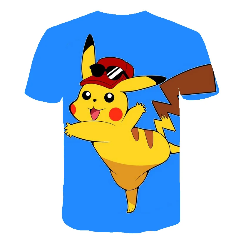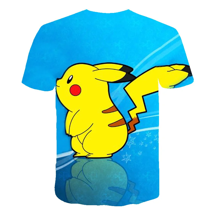 Футболка с рисунком покемона Пикачу для мальчиков, популярная летняя графика 3D для девочек, аниме детская одежда с круглым вырезом