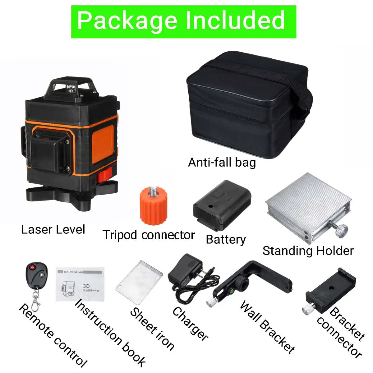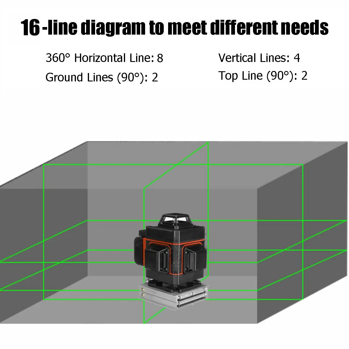 Самонивелирующийся лазерный уровень, 16 линий, зеленый 4D, 360 градусов