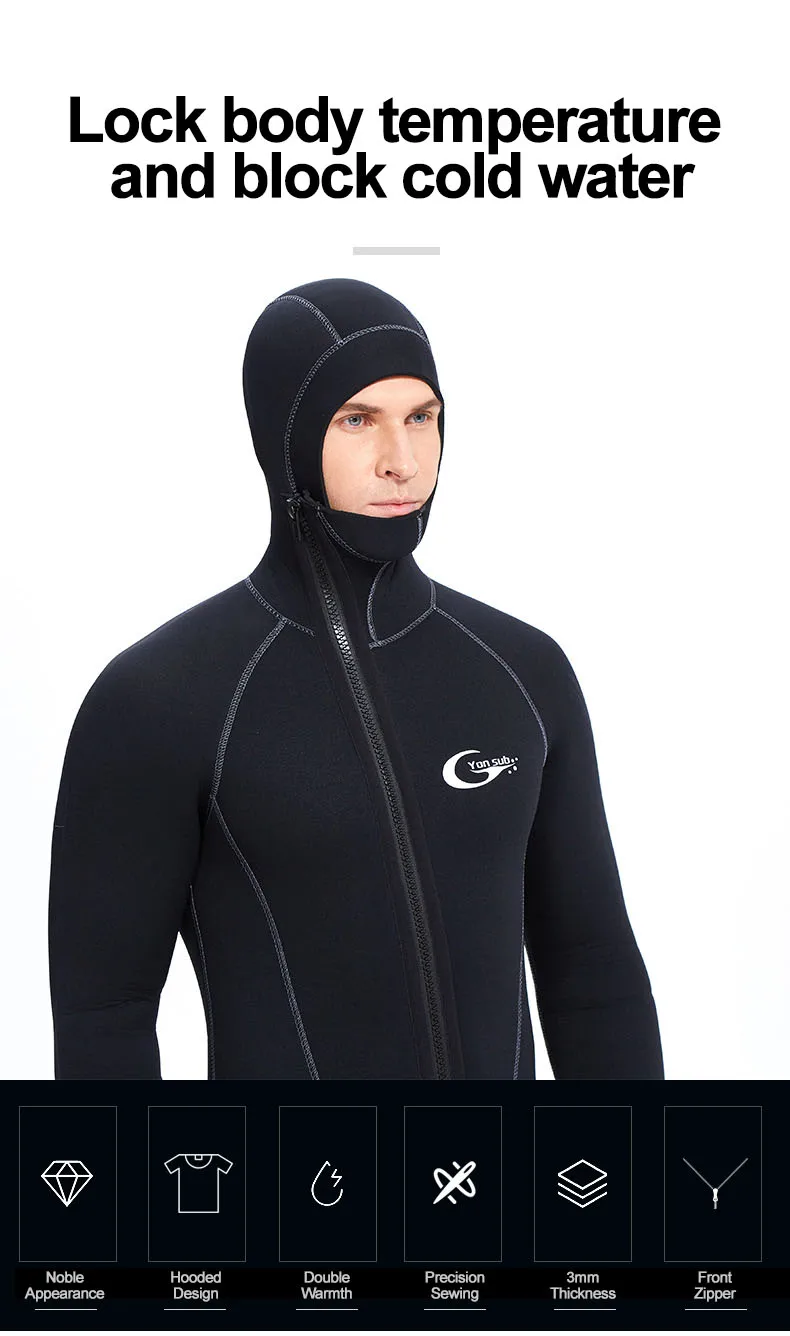 Мужской неопреновый костюм YONSUB для подводного плавания, с капюшо...