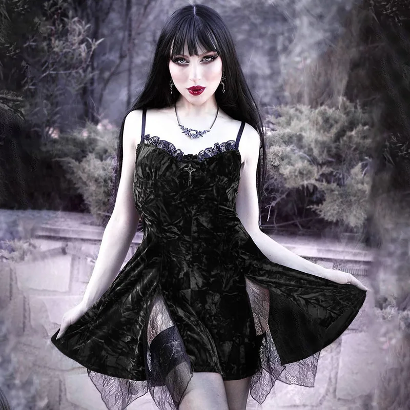 Женское бархатное мини-платье Goth Dark, винтажное кружевное платье...