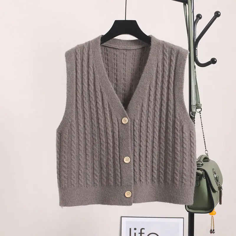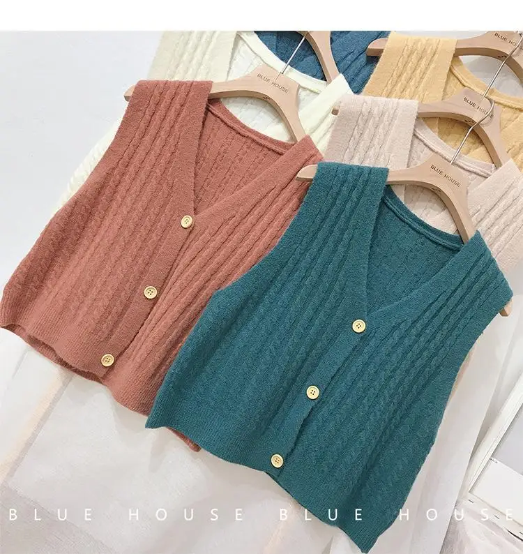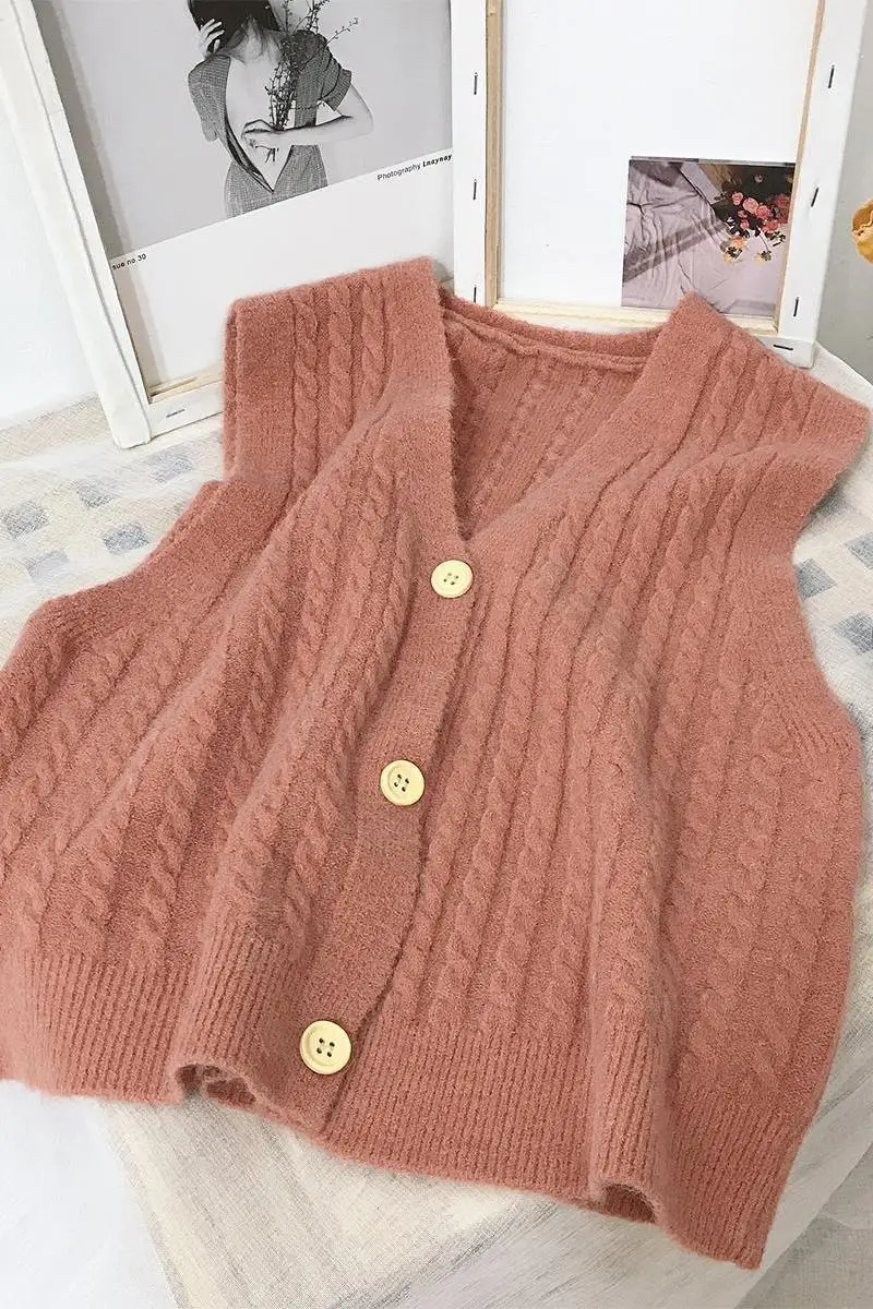 Однотонный вязаный однобортный Кардиган с V-образным вырезом, жилет, Женский весенне-осенне-зимний уличный жилет в стиле ретро, женский свитер, пальто
