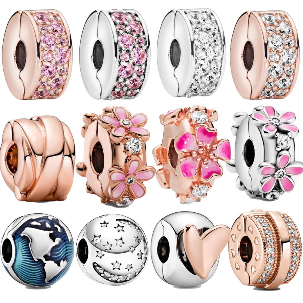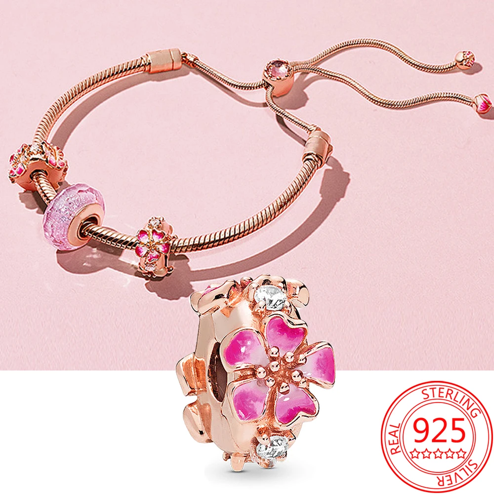 Зажим-Шарм женский из серебра 925 пробы, розовое золото, с ромашками, эмалированное пробы