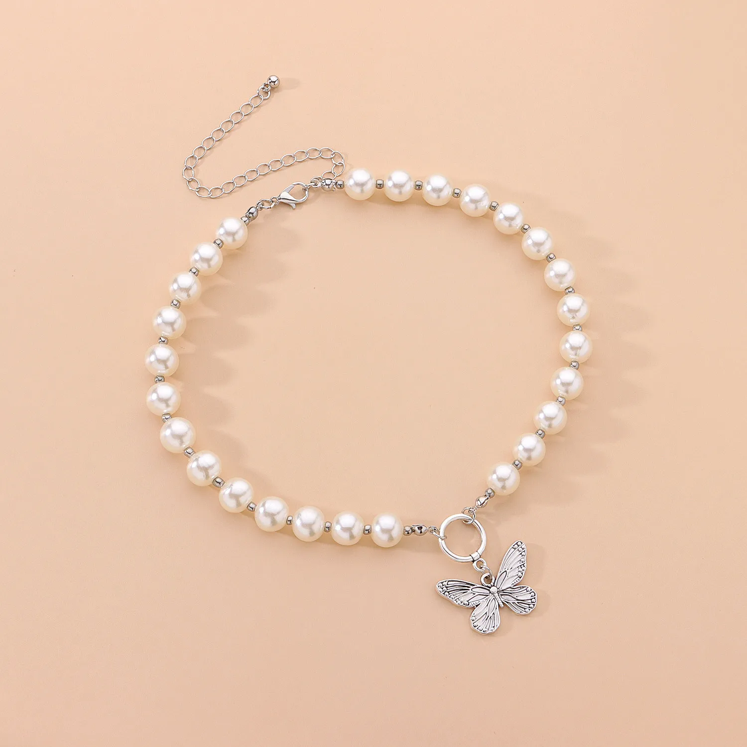 Женское короткое металлическое ожерелье с подвеской-бабочкой, в сти...