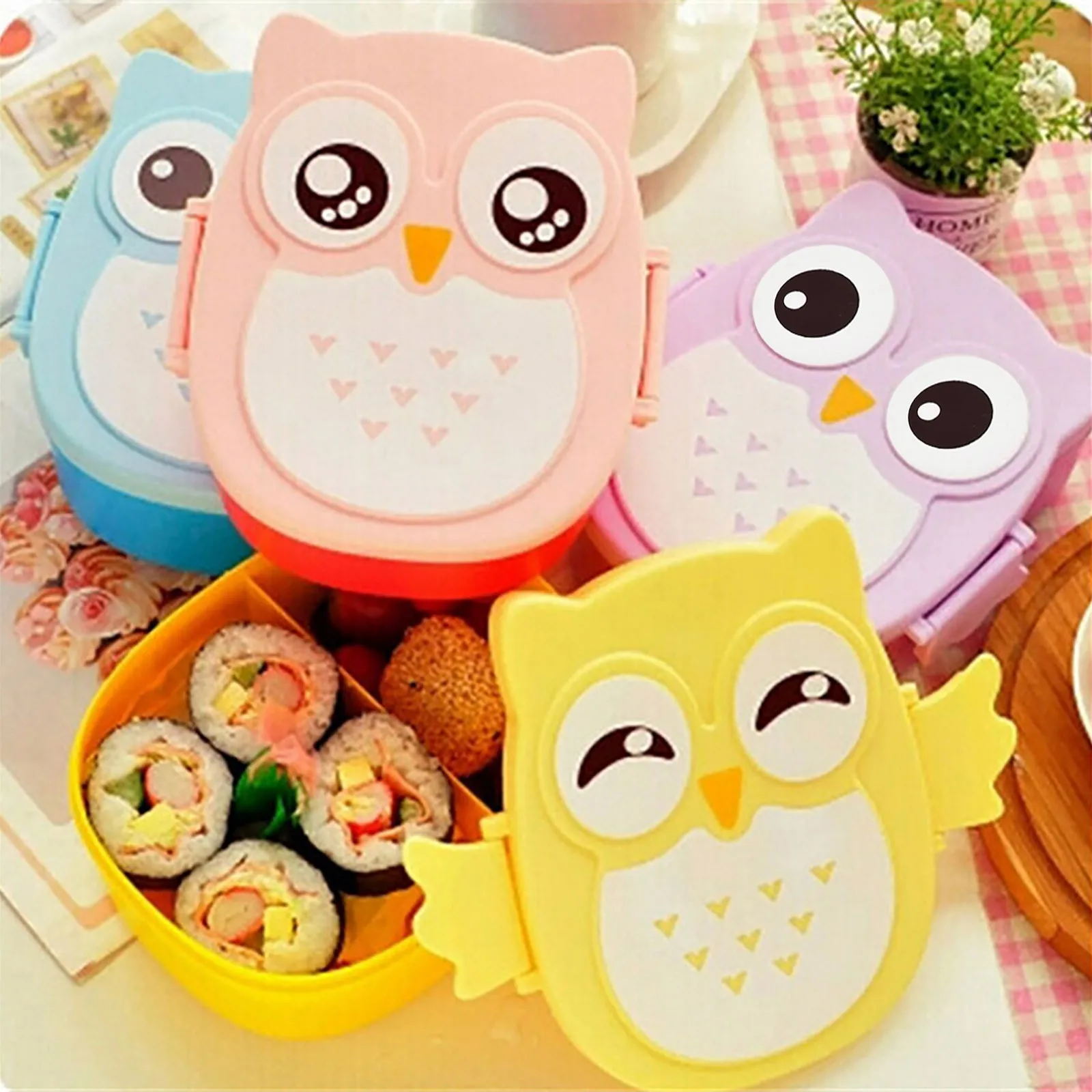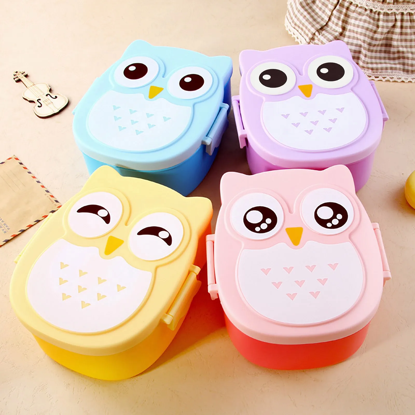 Ланч-бокс с милой мультяшной совой, контейнер для еды, Портативный Ланч-бокс для детей, студентов, контейнер с отделениями, чехол