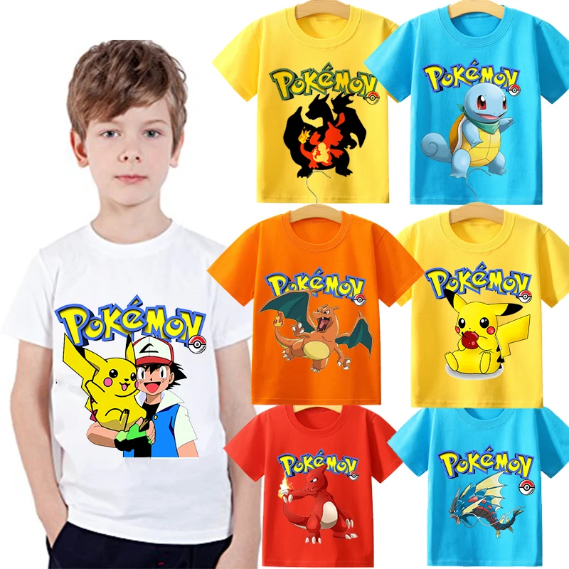 Детские футболки с изображением покемона Пикачу, героев мультфильмов, Charizard Greninja Mewtwo, детская одежда с коротким рукавом, одежда для мальчиков, футболка