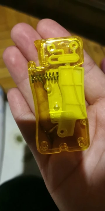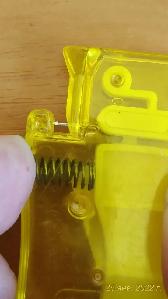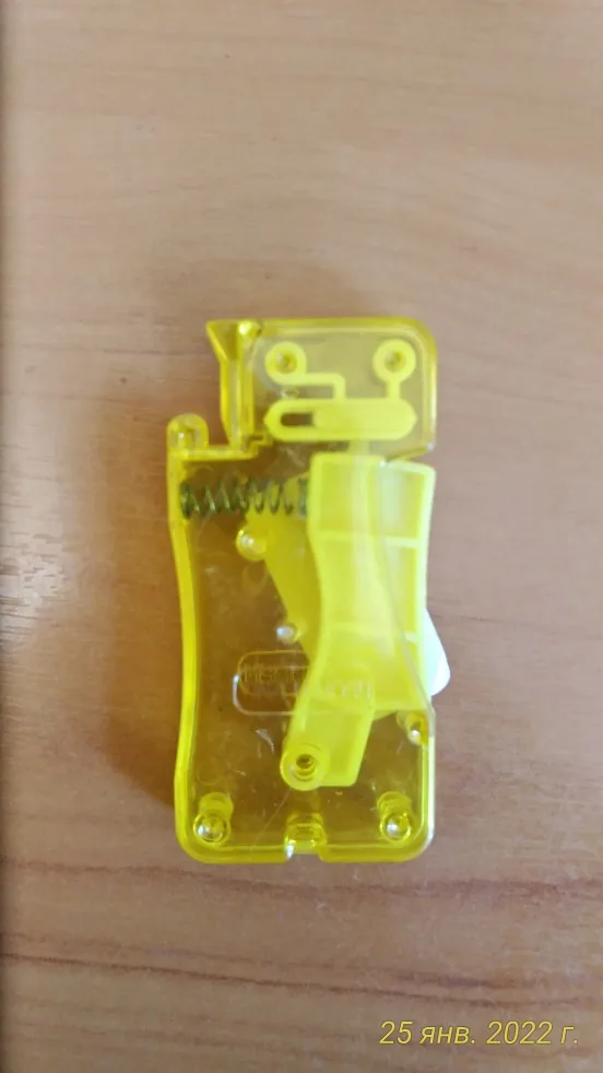 Устройство как в описании. Две половинки не склеины между собой, поэтому иногда расходятся. В целом устройство работает. Бросаете иголку в сопло и диете с небольшим усилием на курок. С раза 4го или 5го кчучок попадает в ушко. Далее накладывает нить и отпускает курок. Вытаскиваете иглу с ниткой и всё готово.