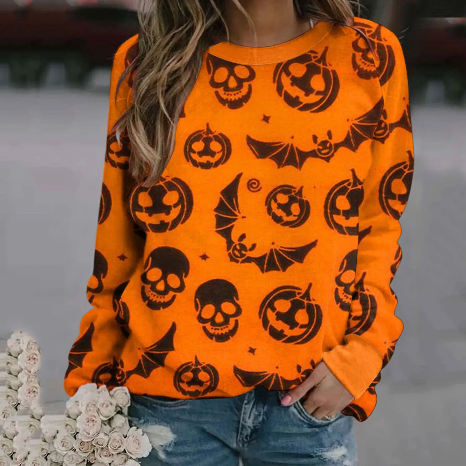 Женская толстовка с длинными рукавами и принтом на Хэллоуин, Повседневный пуловер