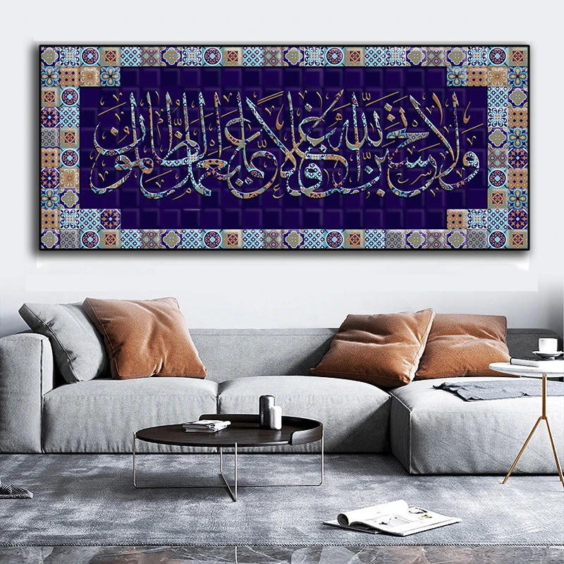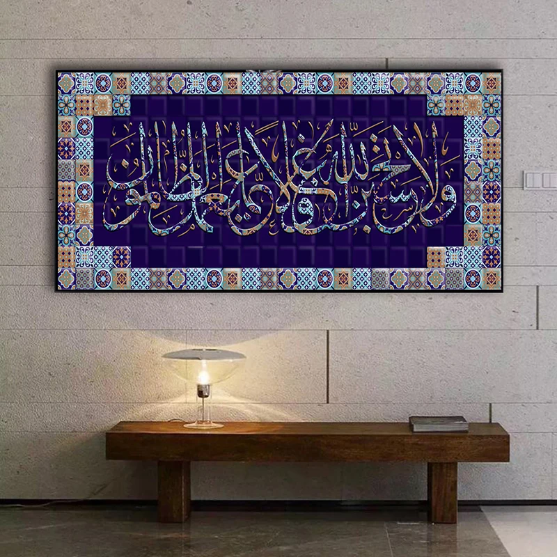 Исламский купол Золотой рок Аллах холст живопись Черно-белый постер...