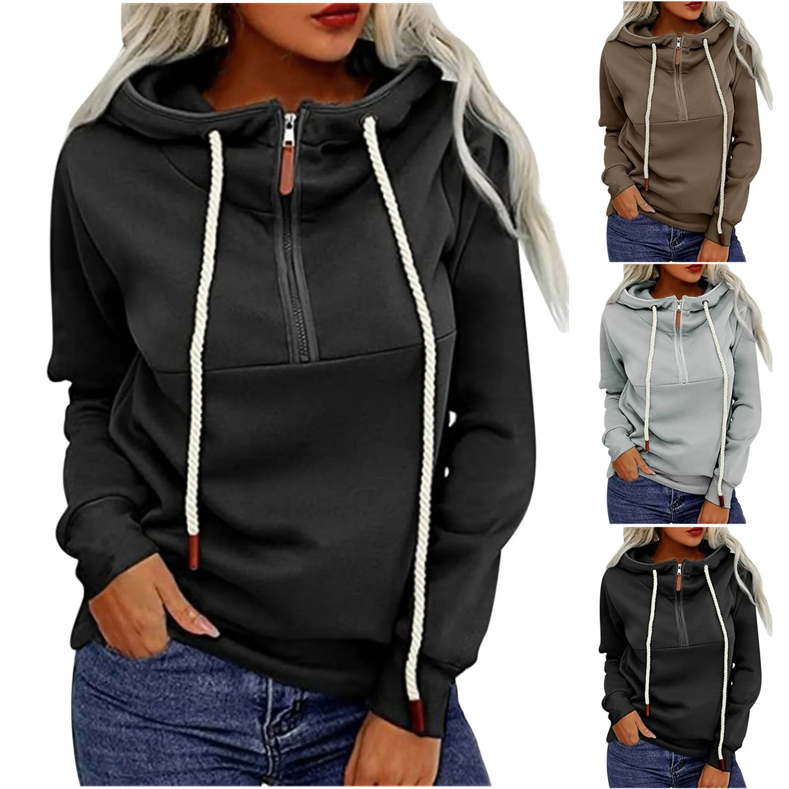 Толстовка Женская Повседневная, свитшот на молнии, удобный Свободный пуловер с круглым вырезом и длинным рукавом, черная или серая ткань, Осень-зима